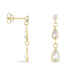 Boucles D’oreilles Pendantes Britain Or Jaune Oxyde De Zirconium