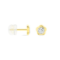 Boucles D’oreilles Puces Eleanor Fleur Or Jaune Oxyde De Zirconium
