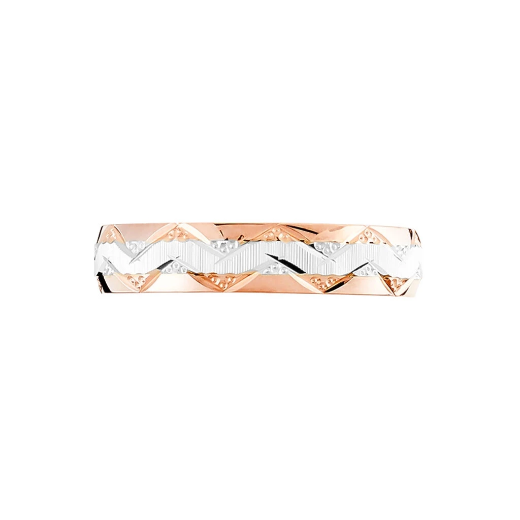 Alliance Or Bicolore 750/1000 Rose Et Blanc Fantaisie 4mm