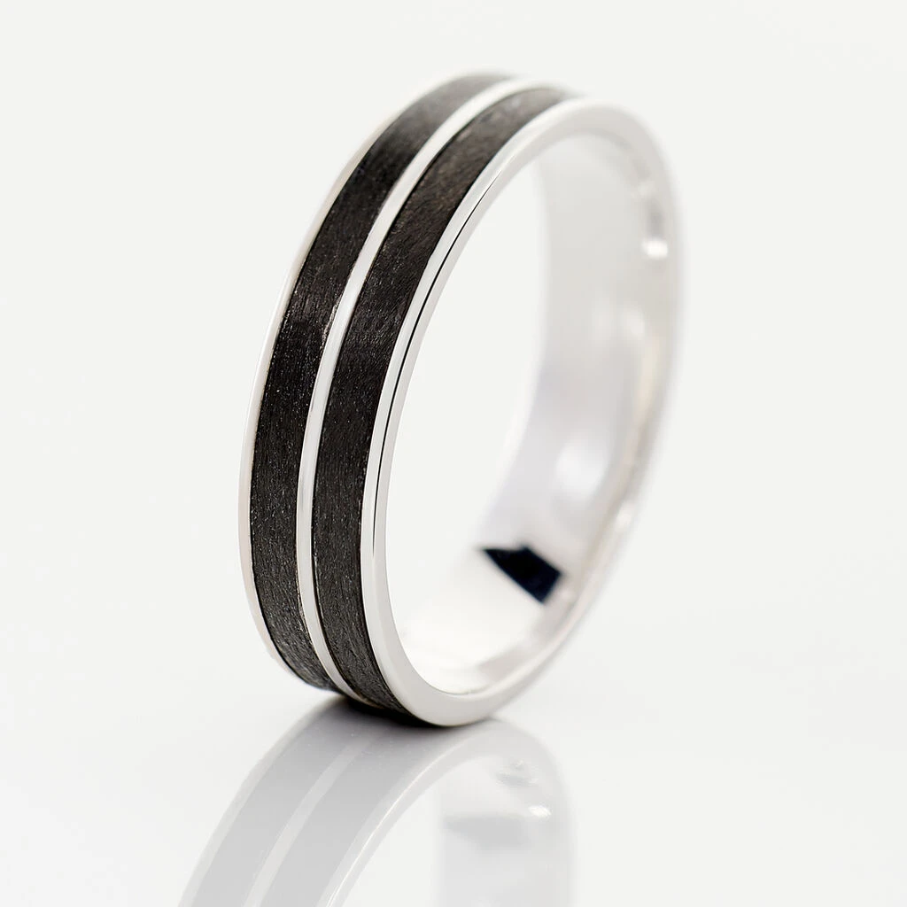 Alliance Argent Blanc 925/1000 2 Rangs Carbone 4.5mm