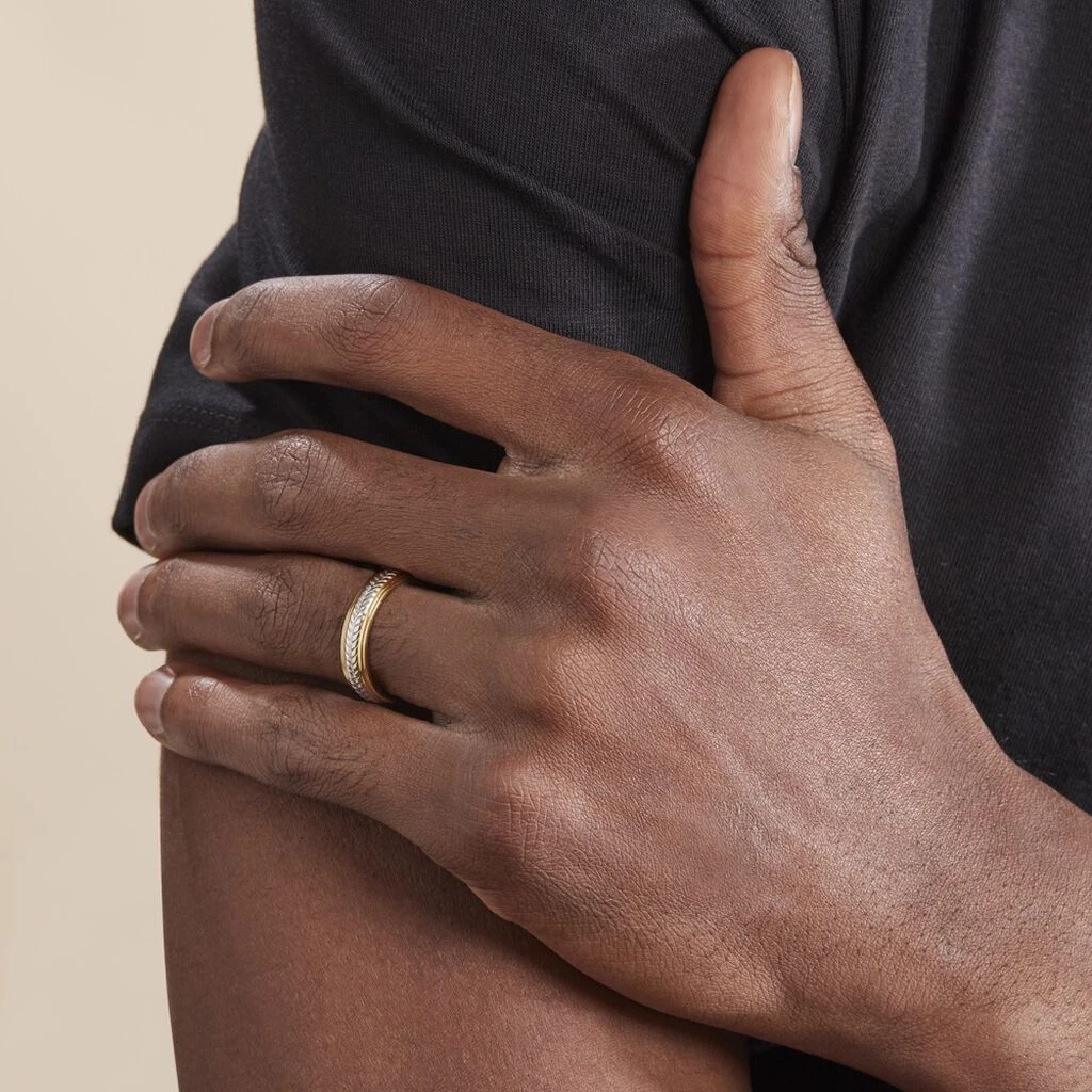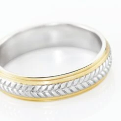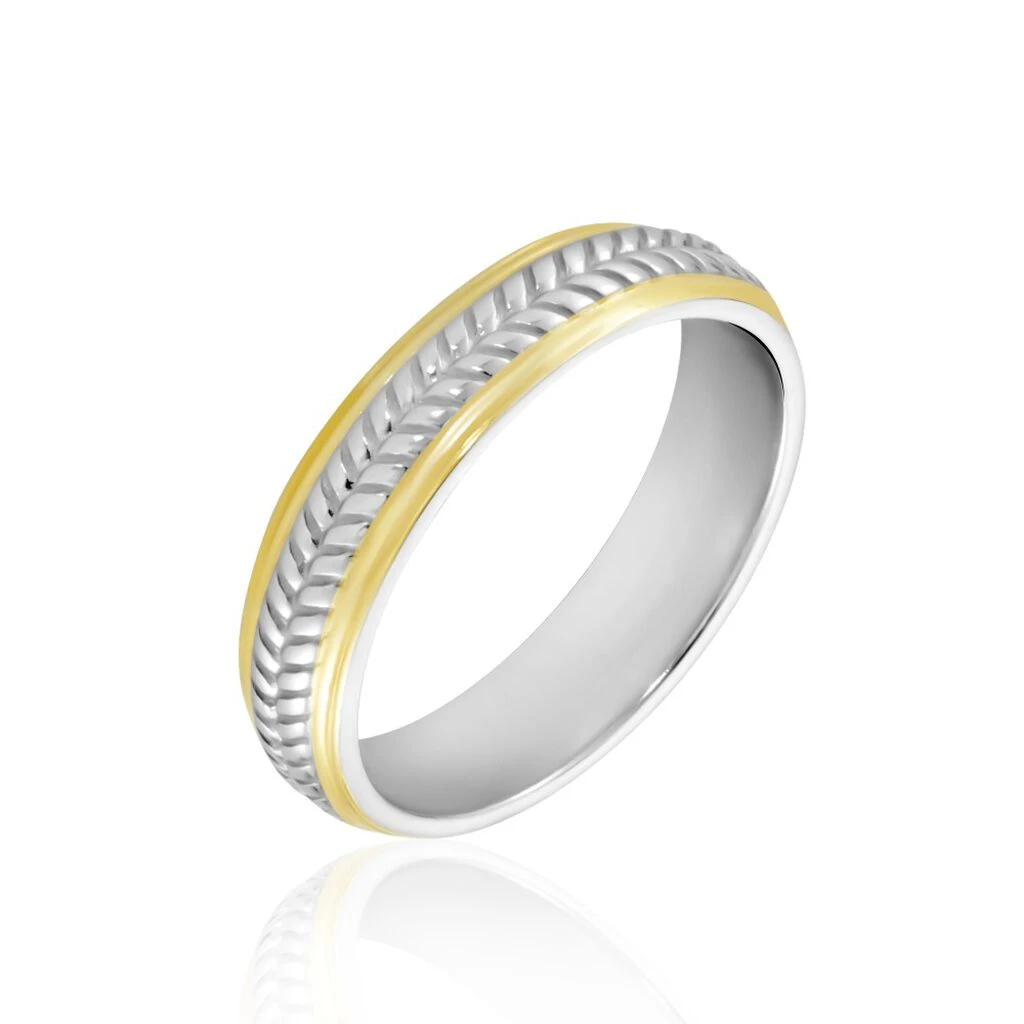 Alliance Argent Bicolore 925/1000 Motifs Chevrons Largeur 4.5mm