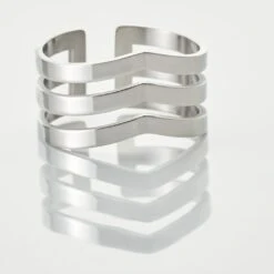 Bague Ajustable Acier Blanc Triple Rang Ajoure Forme Aile De Mouette