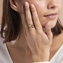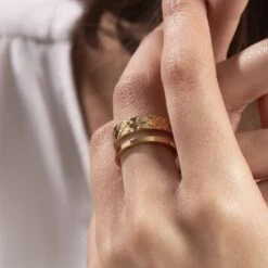 Bague Ajustable Acier Dore 2 Anneaux Larges Ajoures Lisse Et Reptile