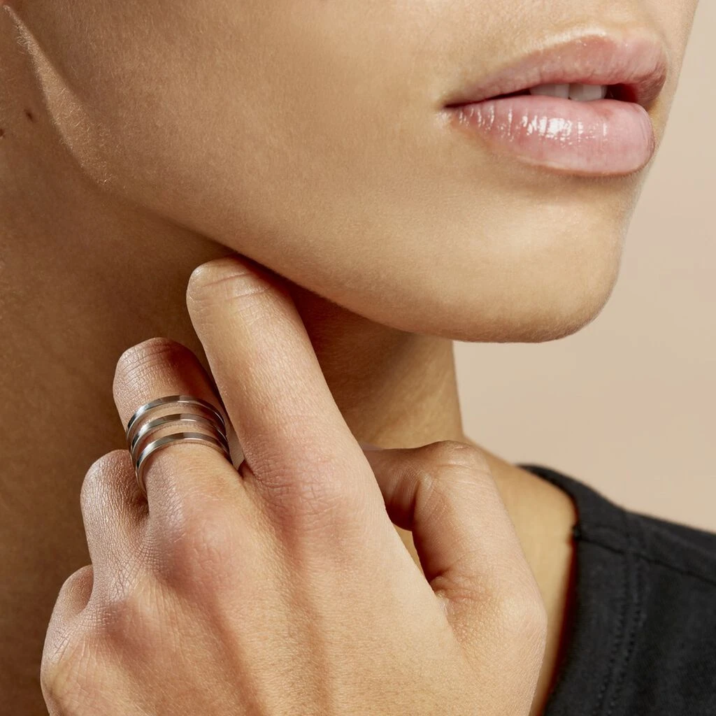 Bague Ajustable Acier Blanc 3 Rangs Ajoures