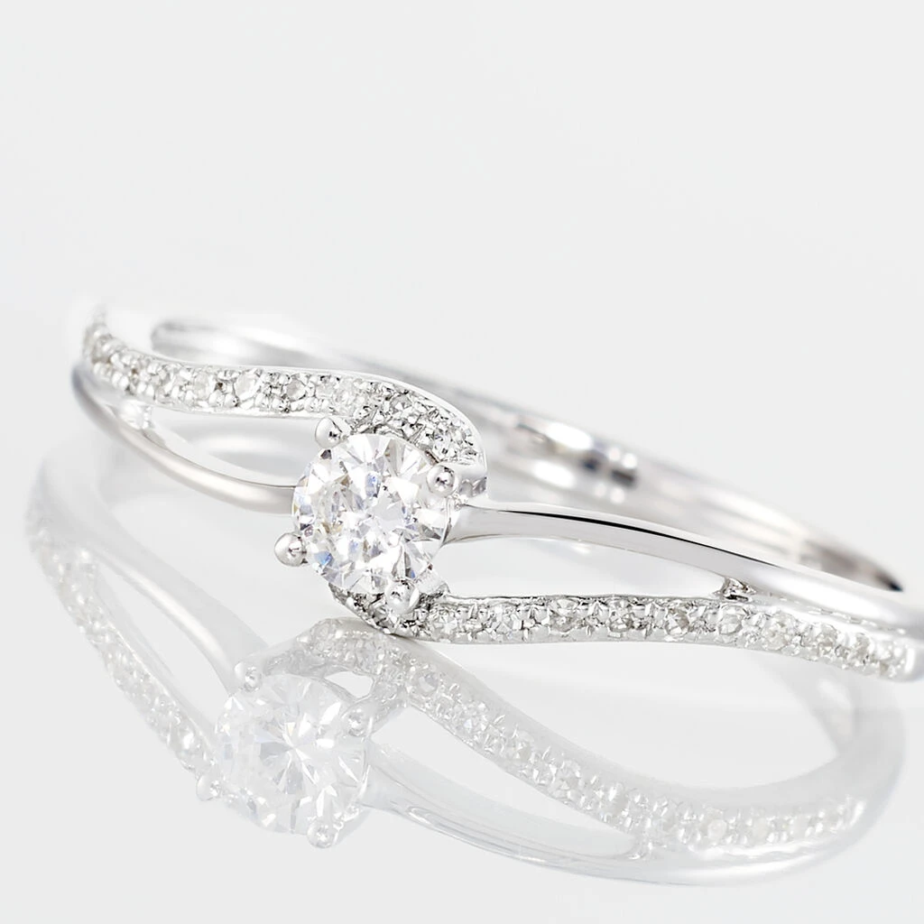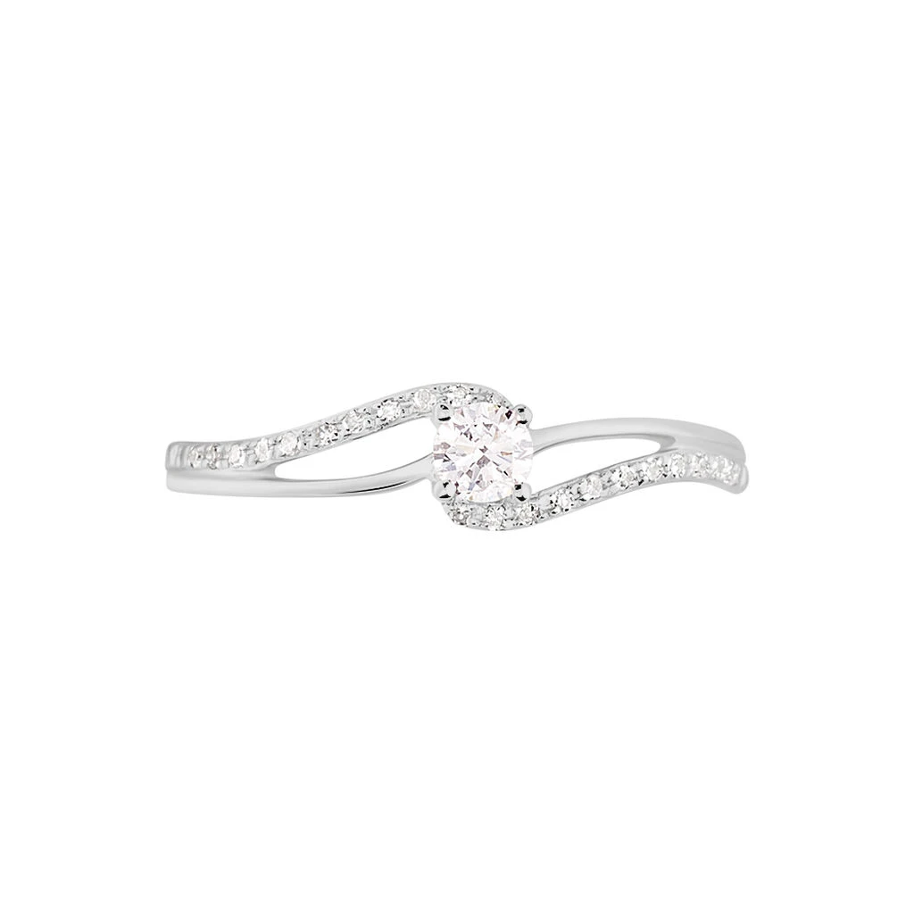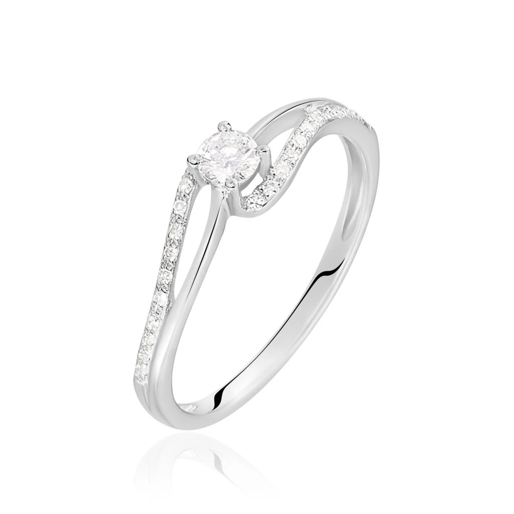 Bague Or Blanc 375/1000 Diamants Central Et Corps Bague Accompagne 0.11cts