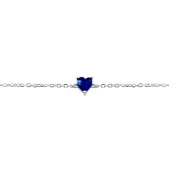 Bague Argent Blanc 925/1000 Cœur Serti Griffes Oxyde De Zirconium Bleu Accompagné
