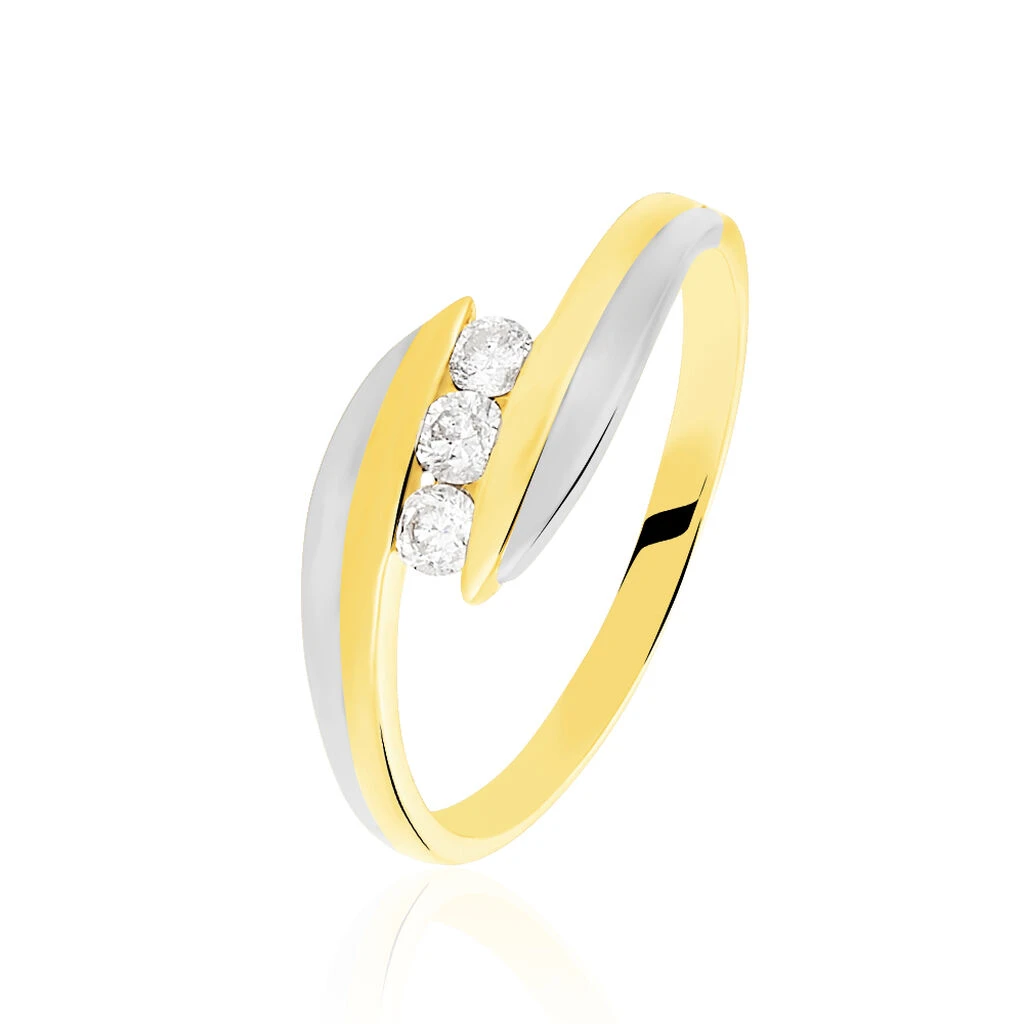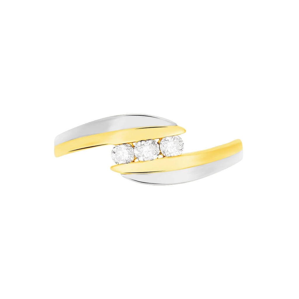 Bague Or Bicolore Trilogie Diamants Sertis Rail