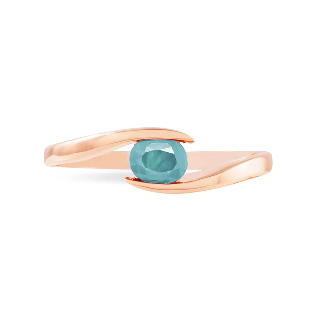 Bague Or Rose 375/1000 Aigue-marine Ovale Serti Couteau