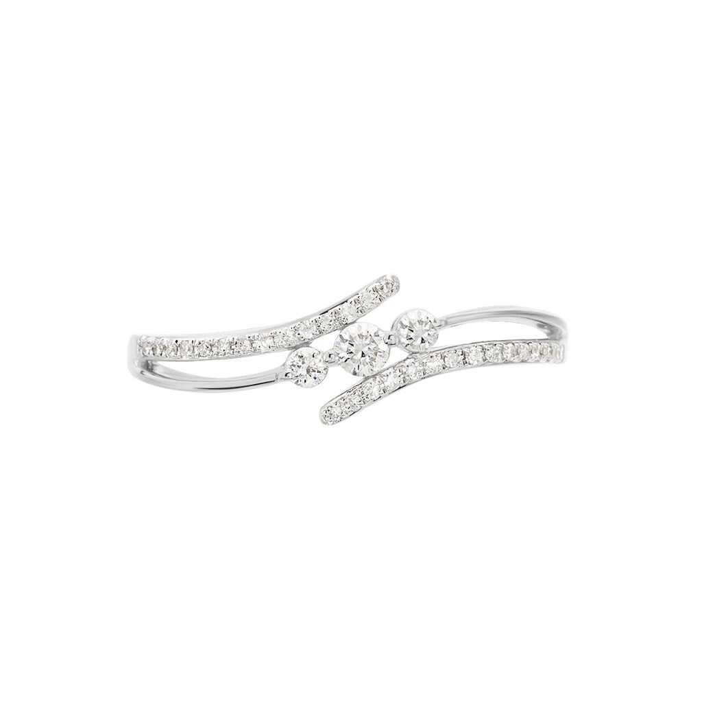 Bague Or Blanc 375/1000 Trilogie Diamant 0.192cts Accompagnes Corps De Bague Double