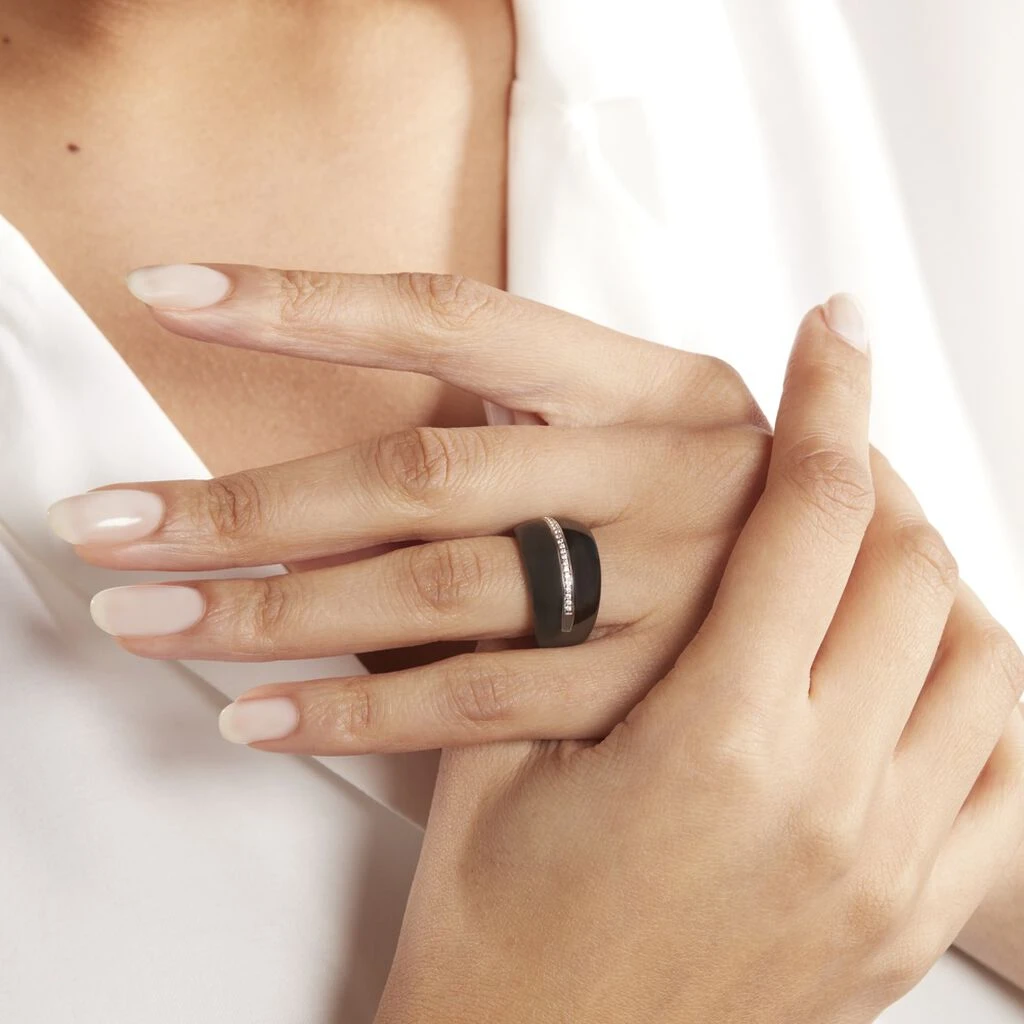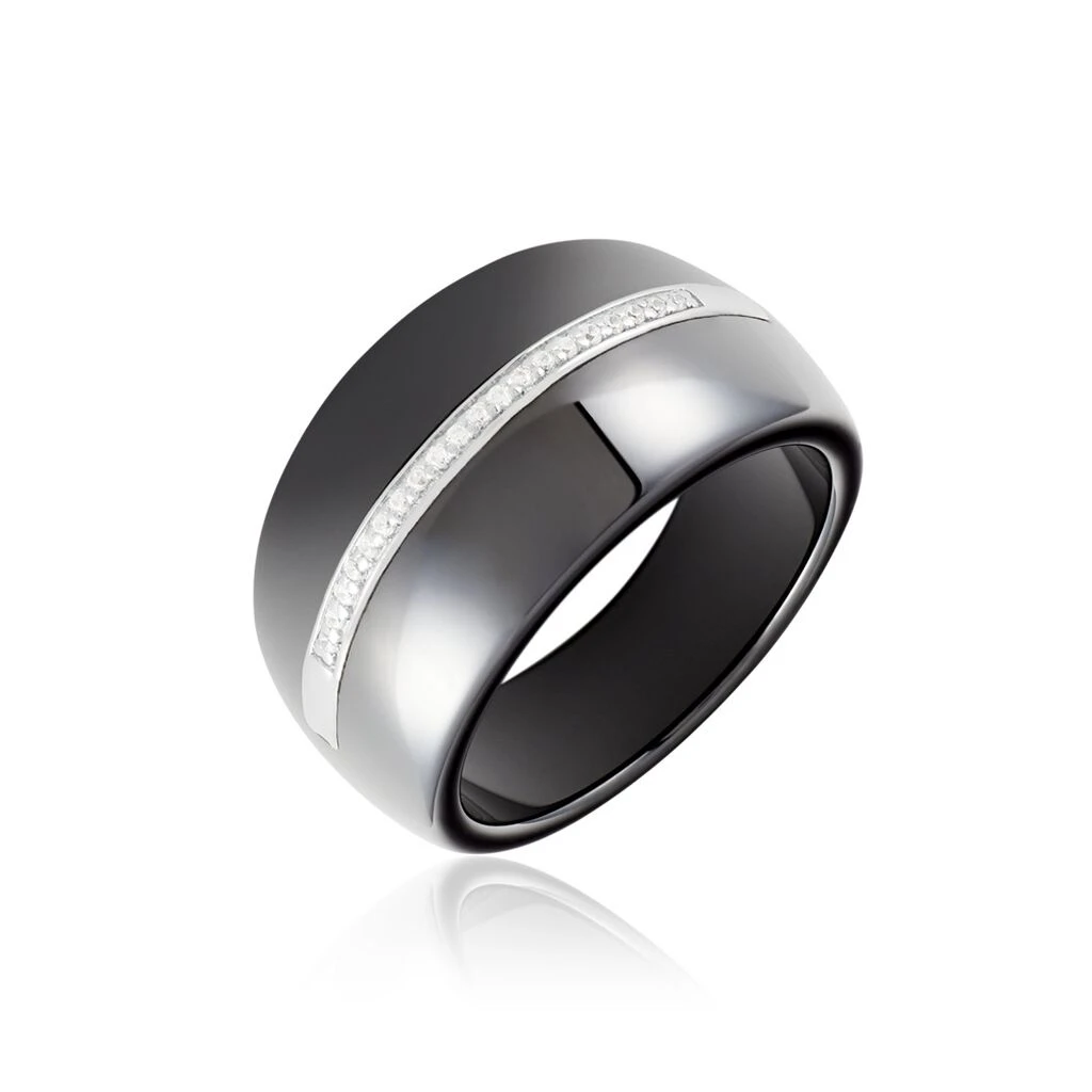 Bague Ceramik Design Argent Blanc Oxyde De Zirconium Et Céramique