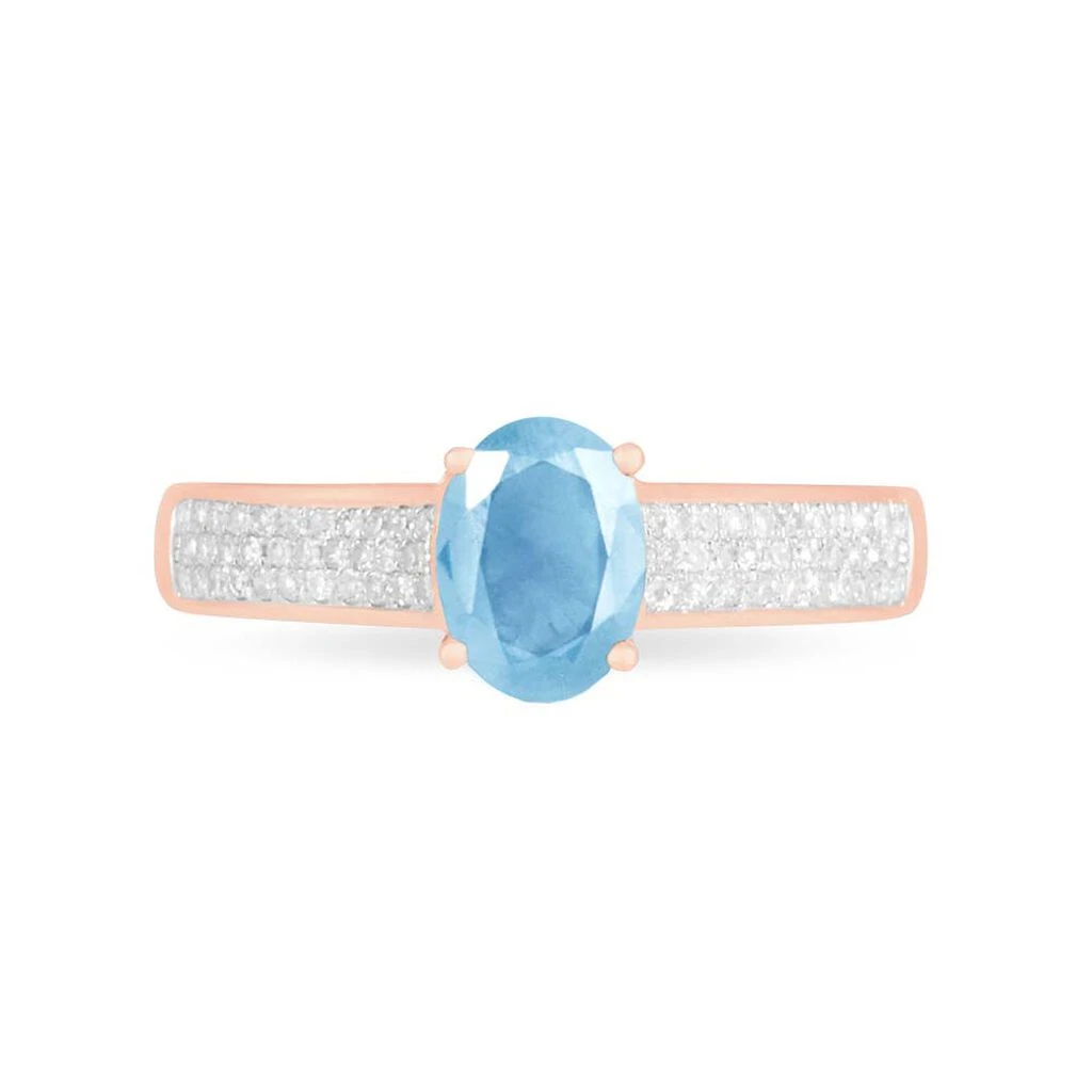Bague Or Rose 750/1000 Topaze Bleue Claire Ovale Accompagnée Diamants Pm