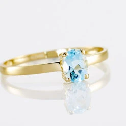 Bague Or Jaune 375/1000 Topaze Ovale Serti 4 Griffes