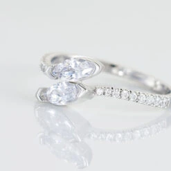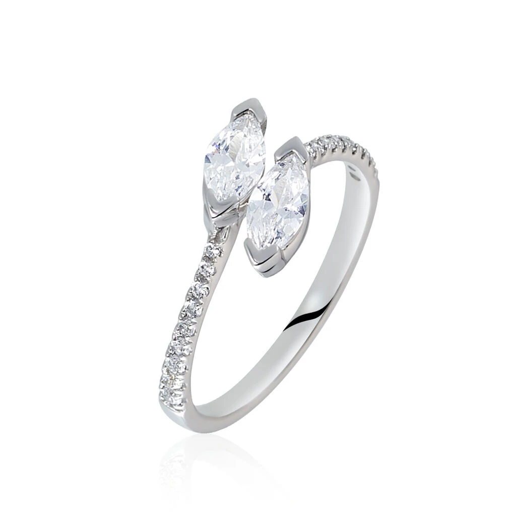 Bague Argent Blanc 925/1000 Toi Et Moi Accompagne Oxydes De Zirconium Sertis Griffes