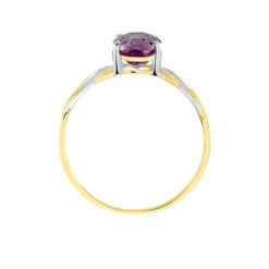Bague Or Bicolore 375/1000 Améthyste Ovale Sertie Griffes