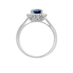 Bague Or Blanc 375/1000 Marguerite Topaze London Blue Entourage Oxydes De Zirconium