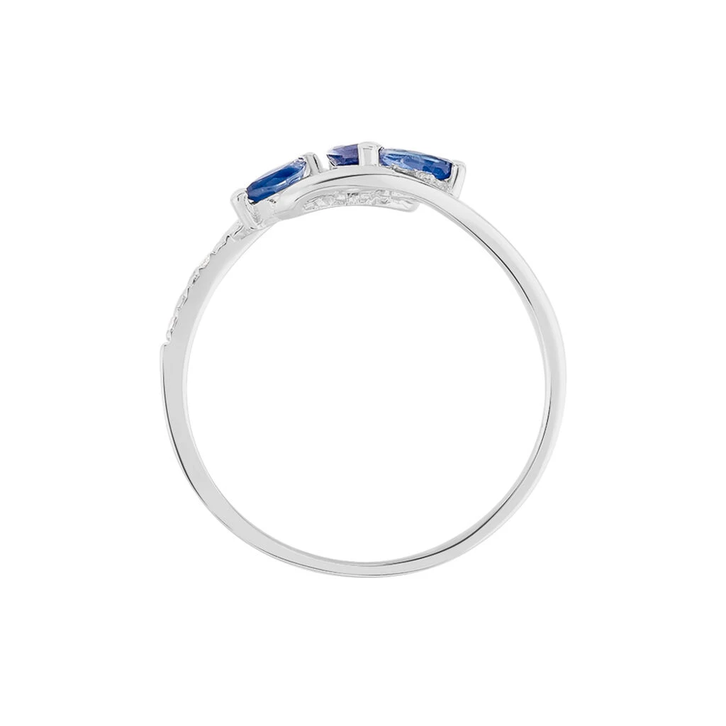 Bague Or Blanc 375/1000 Petale Trilogie Saphirs Et Diamants