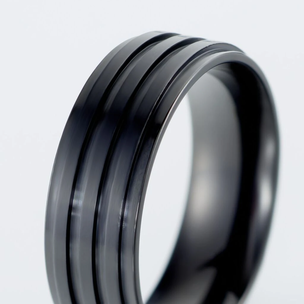 Bague Acier Noir Rayures Effet Mat