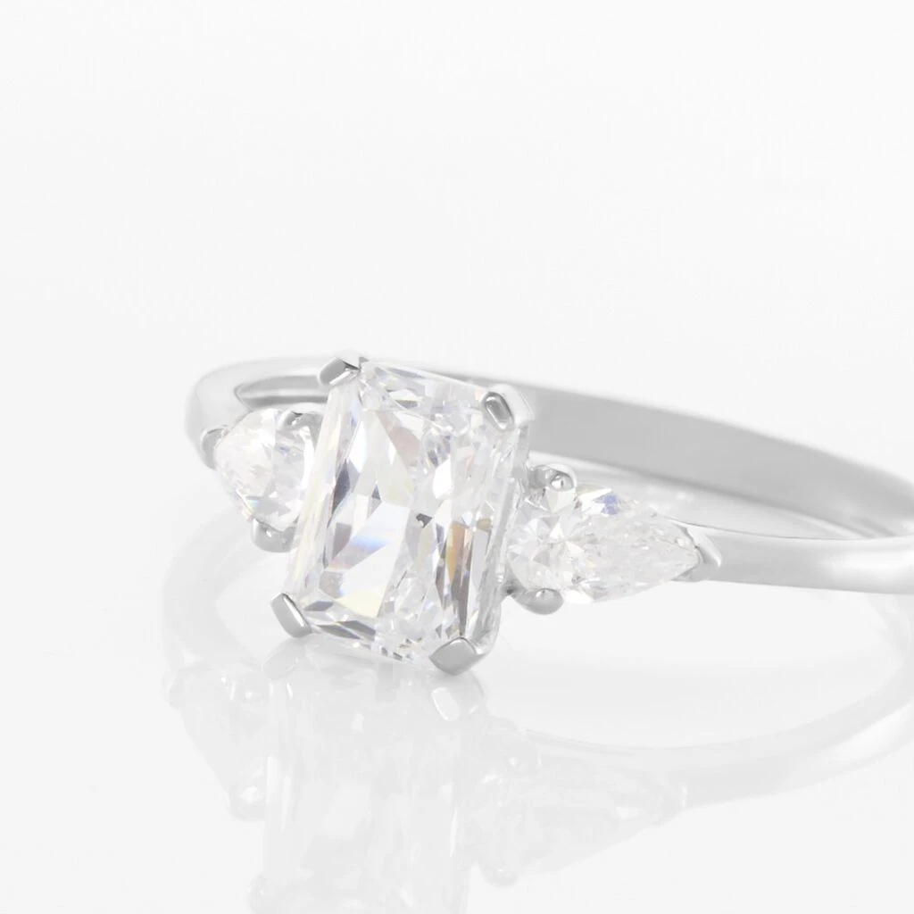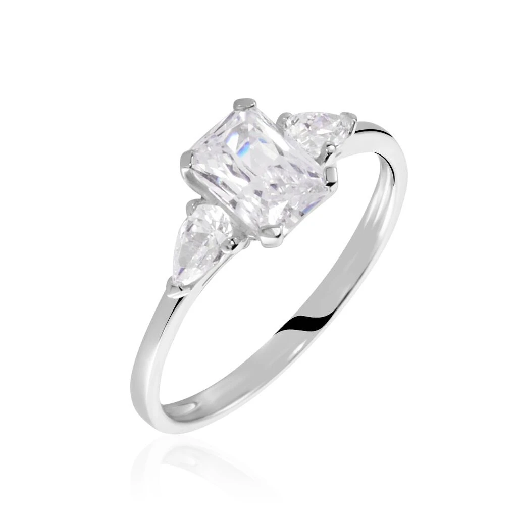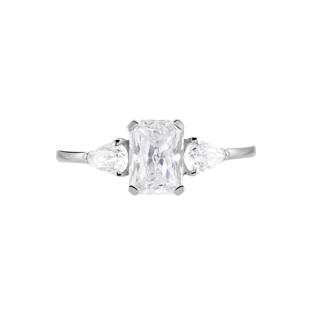Bague Or Blanc 375/1000 Oxyde De Zirconium Central Taille Emeraude Accompagne Oxydes De Zirconium Formes Poires