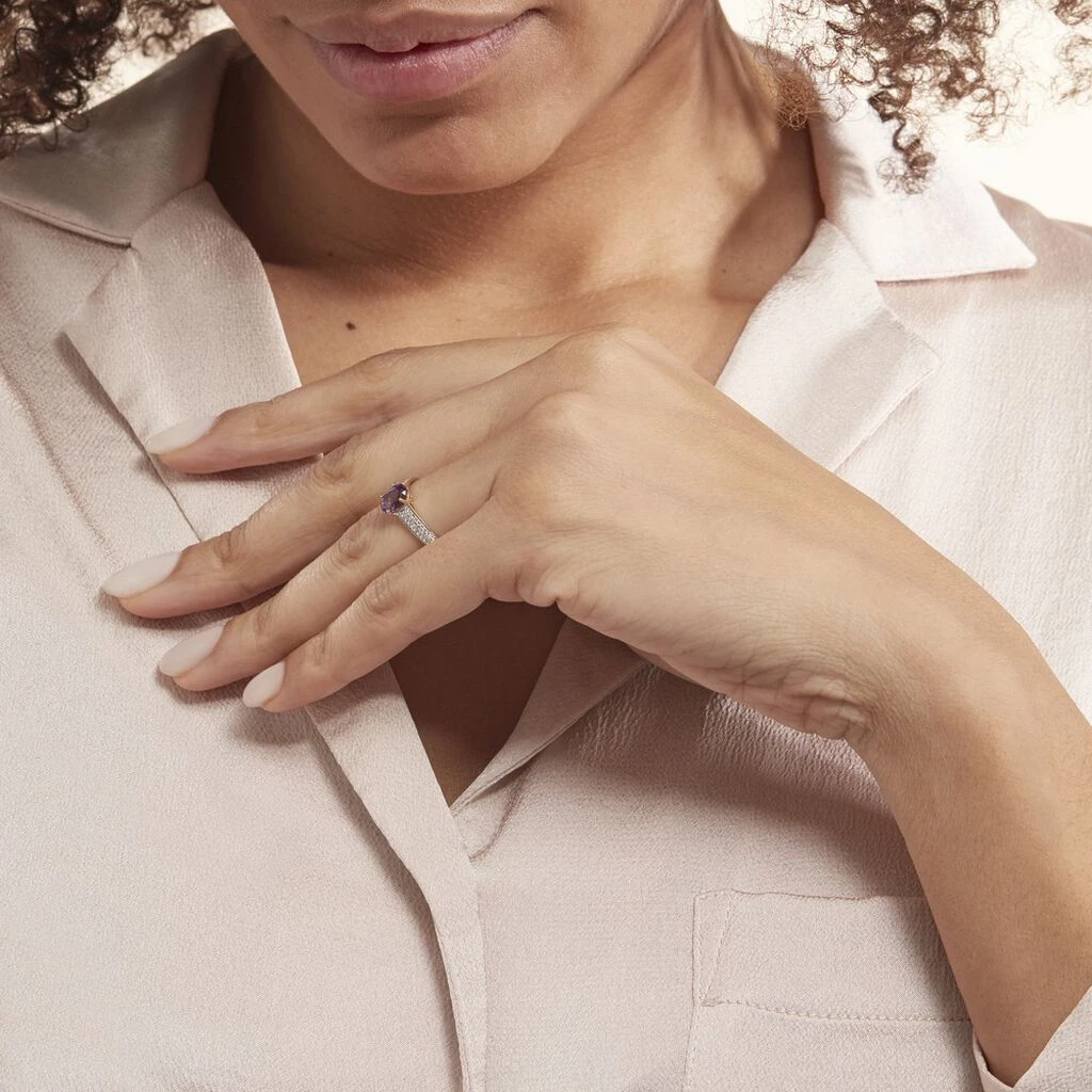 Bague Solitaire Crista Or Jauneamethyste Et Oxyde