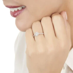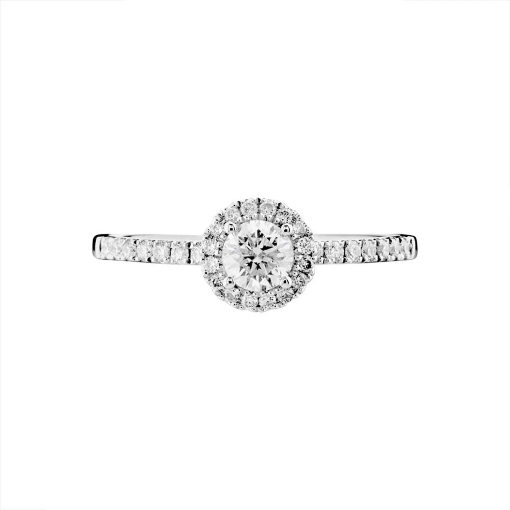 Solitaire Or Blanc 375/1000 Diamant Central 0.32cts Accompagne Diamants