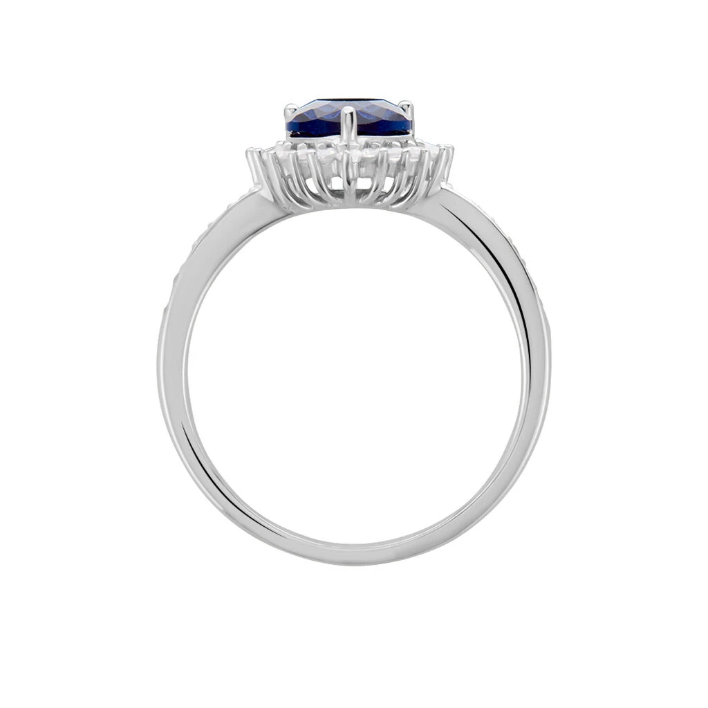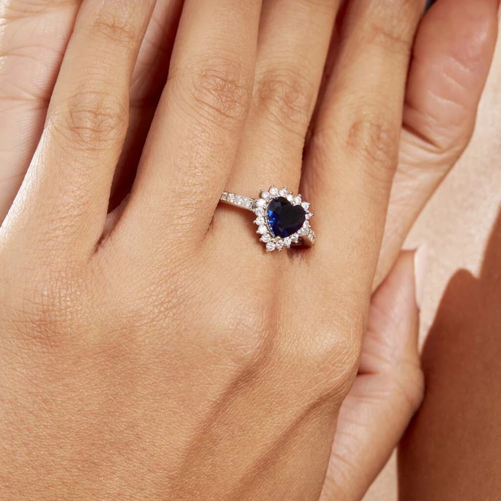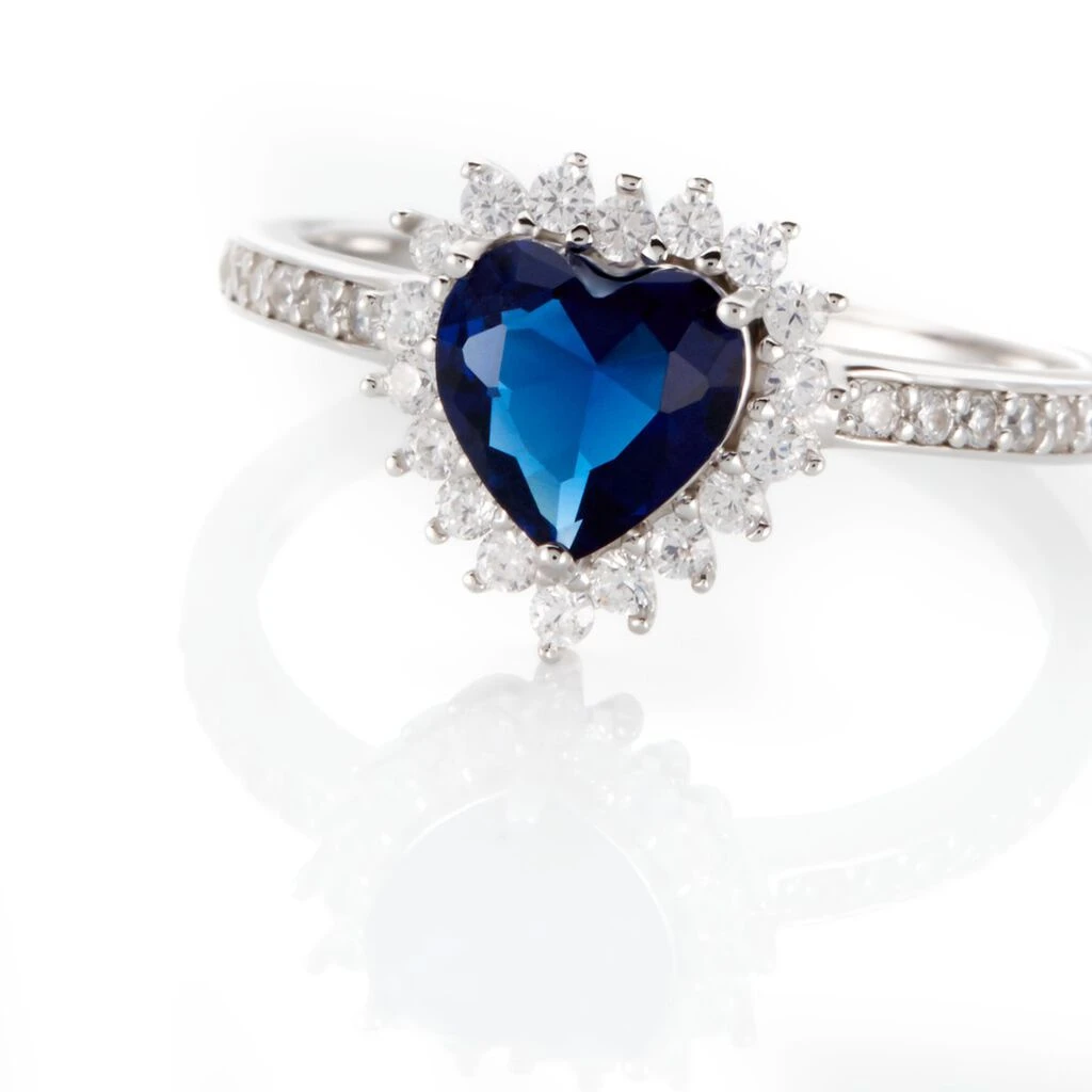 Bague Argent Blanc 925/1000 CĹ“ur De L’ocean Serti Griffes Pierre Artificielle Bleue Entourage Oxydes De Zirconium