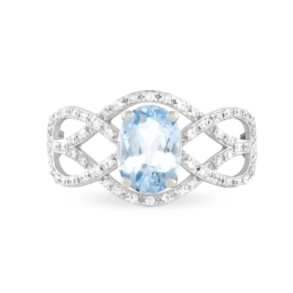 Bague Or Blanc 375/1000 Topaze Centrale Ovale Et Diamants