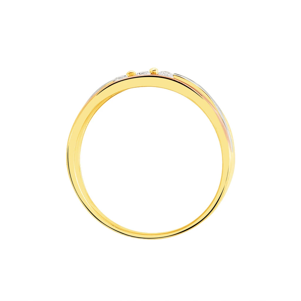Bague Or Tricolore 375/1000 3 Rangs Ajoures Trilogie Diamants 0.08cts