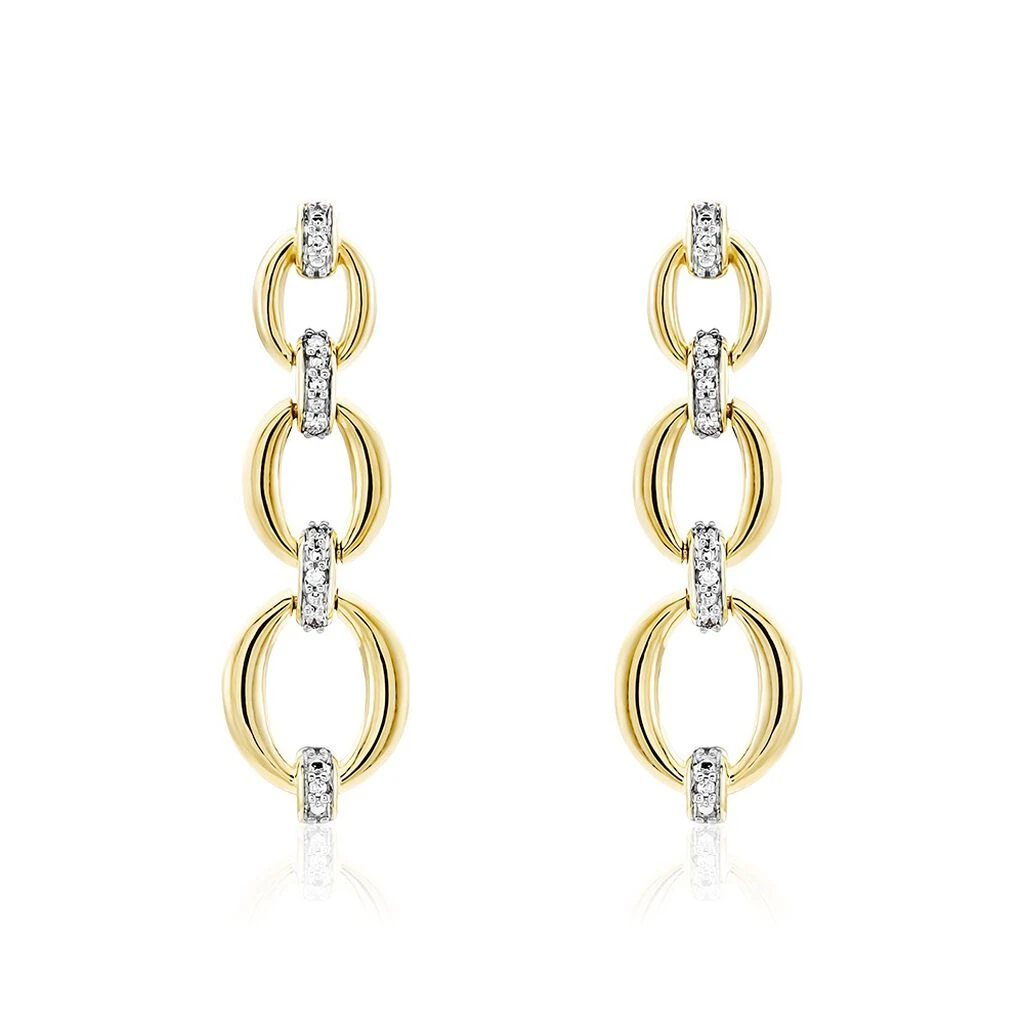 Boucles D’oreilles Pendantes Or Jaune 375/1000 Maillons Et Diamants