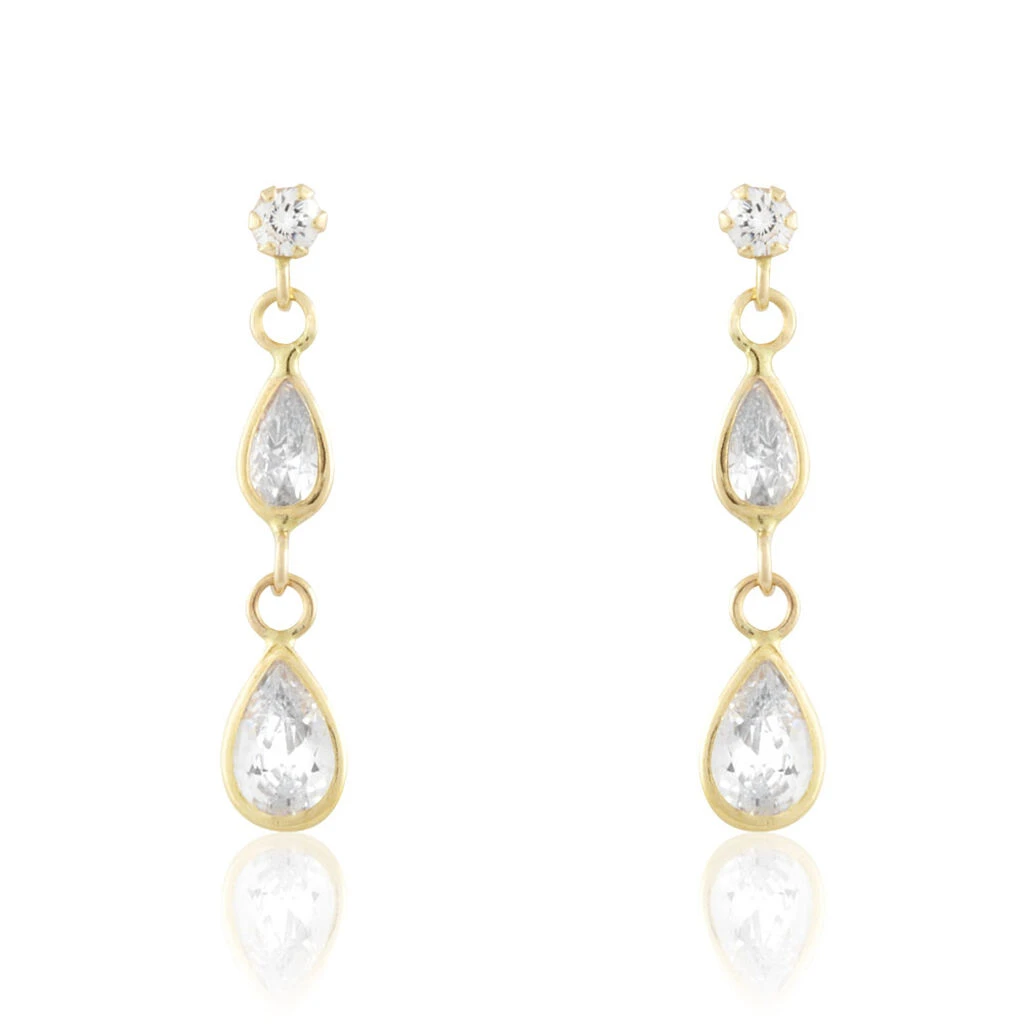 Boucles D’oreilles Or Jaune 375/1000 Pendantes Oxydes De Zirconium Gouttes