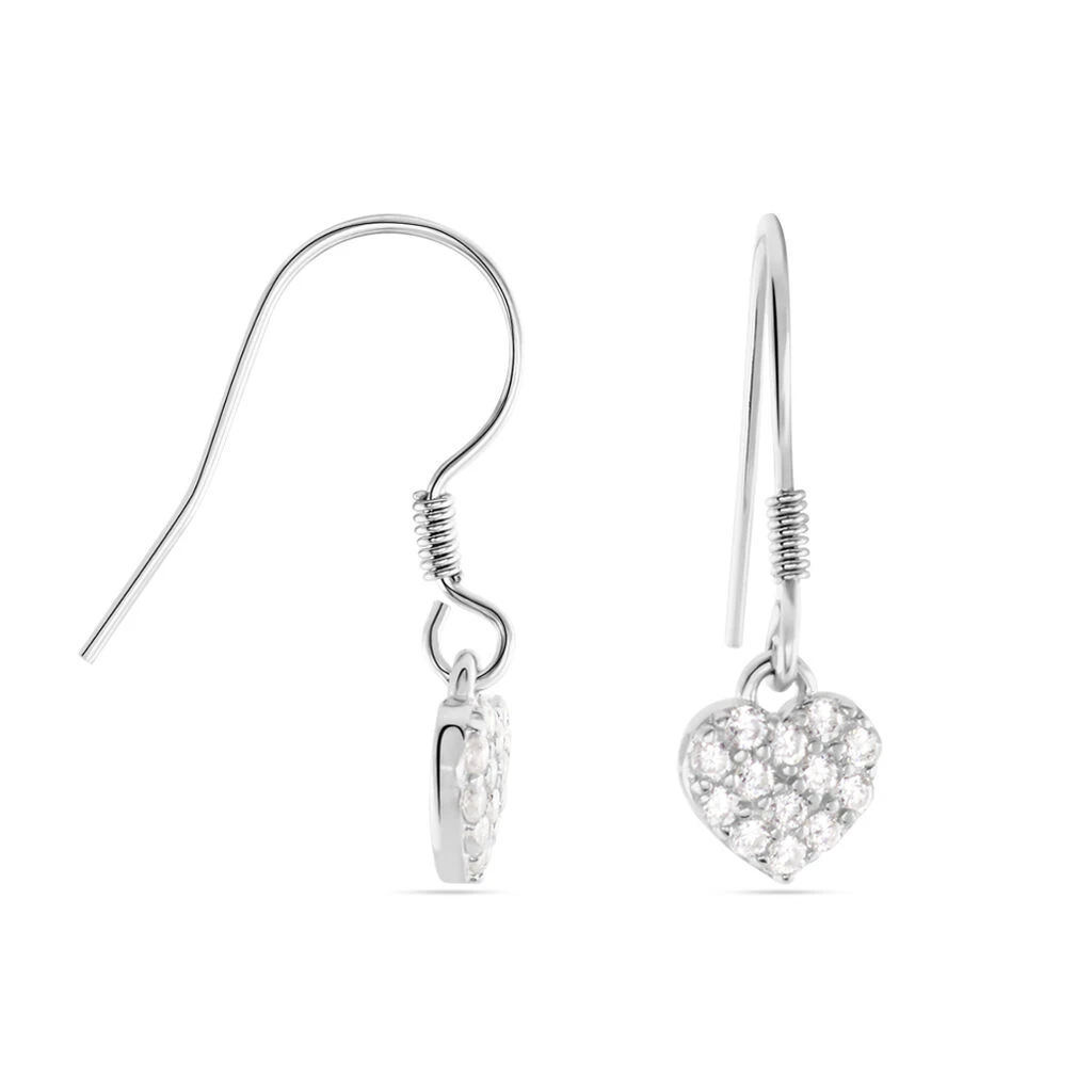 Boucles D’oreilles Pendantes Argent 925/1000 CĹ“ur Oxyde De Zirconium