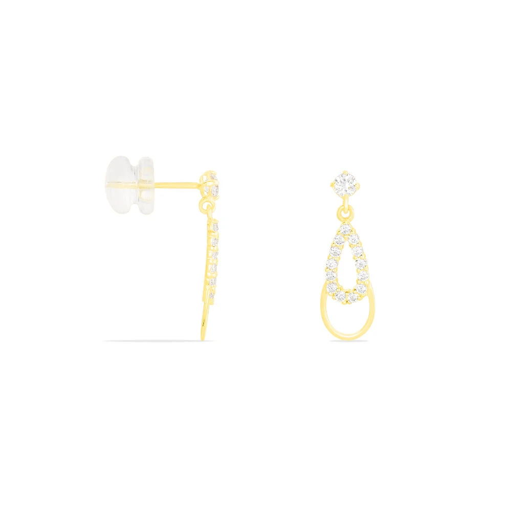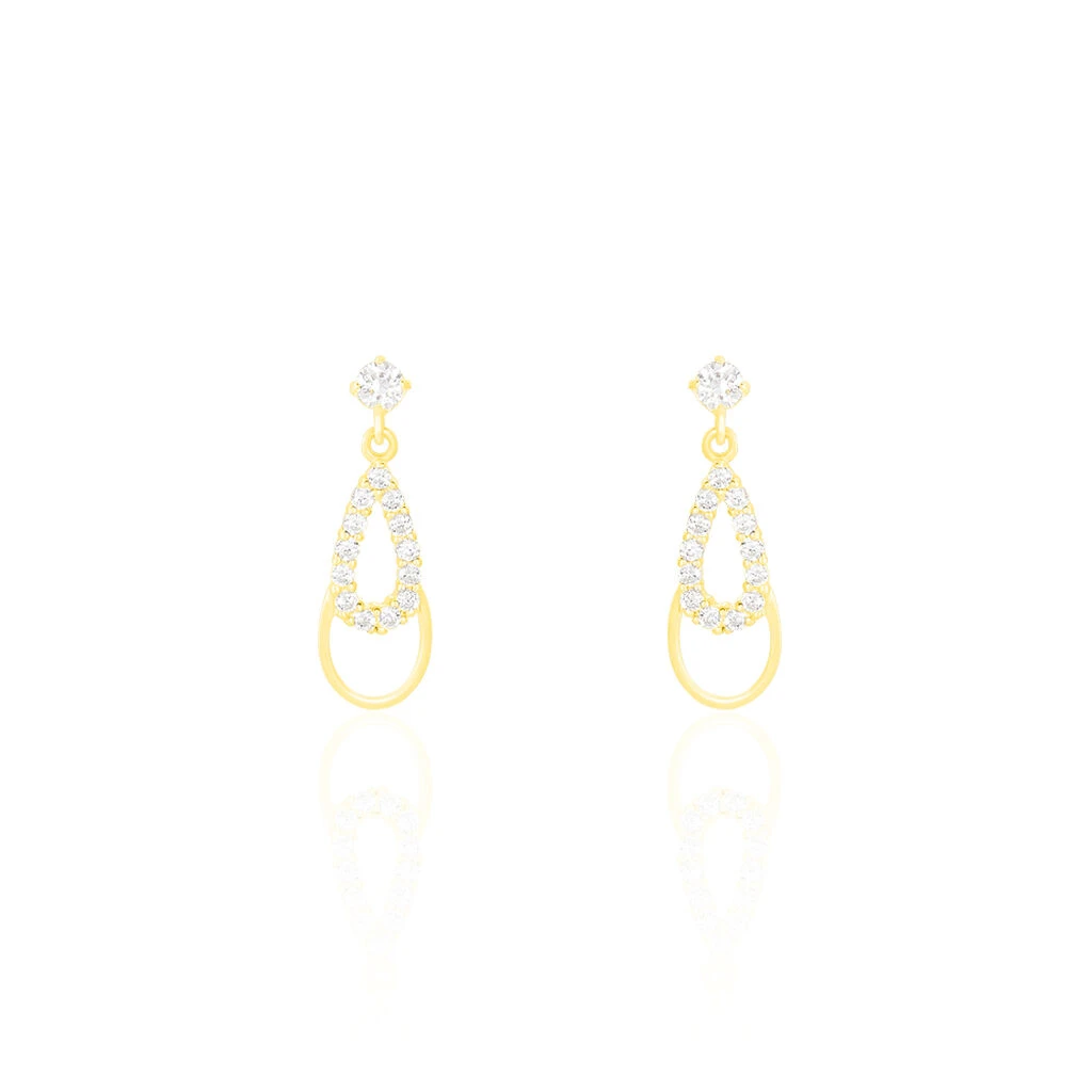 Boucles D’oreilles Or Jaune 375/1000 Celine Double Gouttes Oxydes De Zirconium