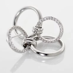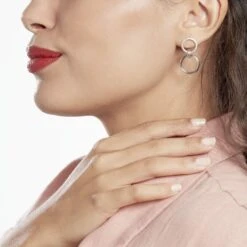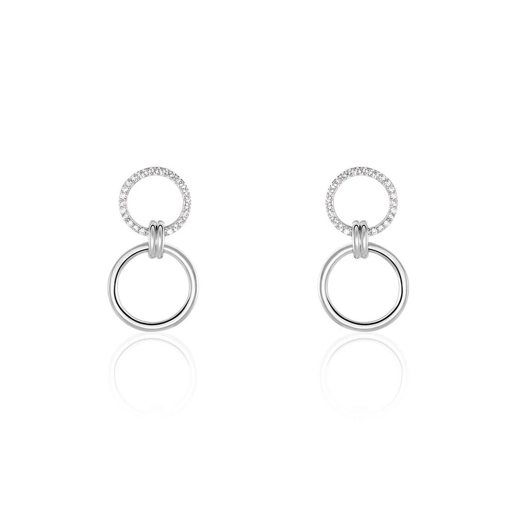 Boucles D’oreilles Pendantes Argent Blanc 925/1000 Double Cercles Micro Setting Oxydes De Zirconium Blanc