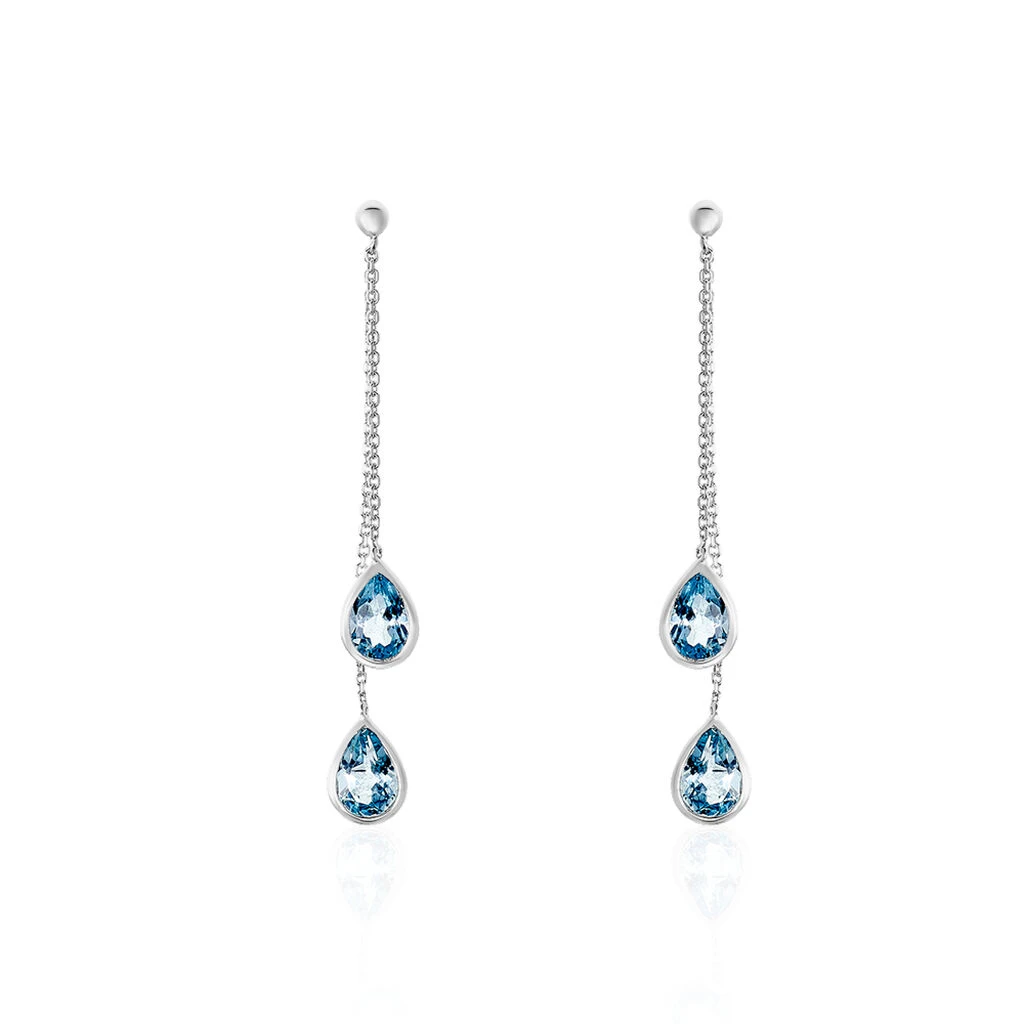Boucles D’oreilles Pendantes Djime Or Blanc Topaze