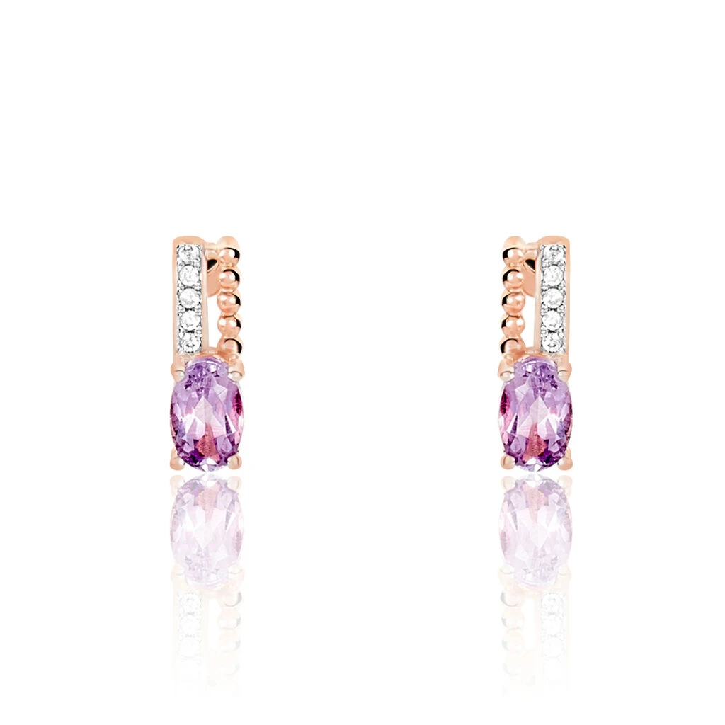 Boucles D’oreilles Or Rose 375/1000 AmĂ©thystes Formes Ovales AjourĂ©es Et PerlĂ©es + Semi Pave Oxydes De Zirconium