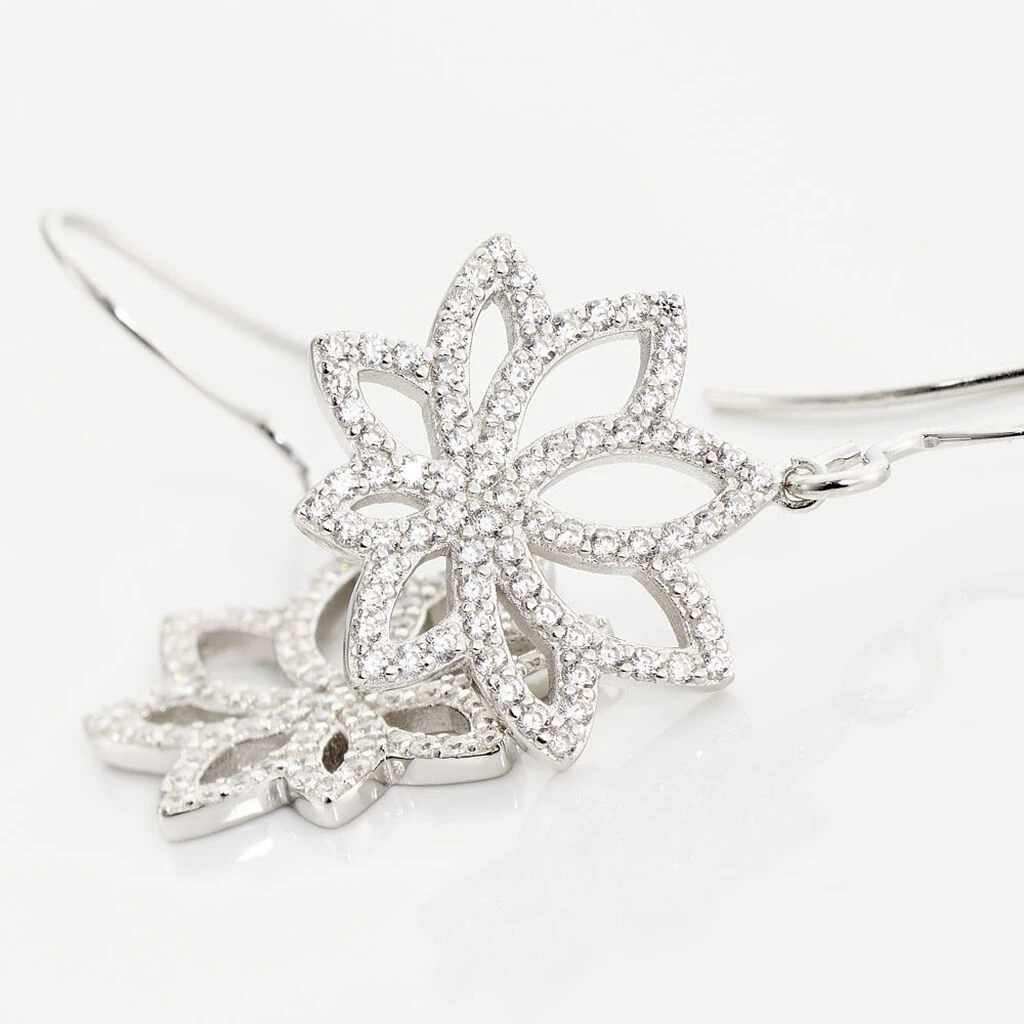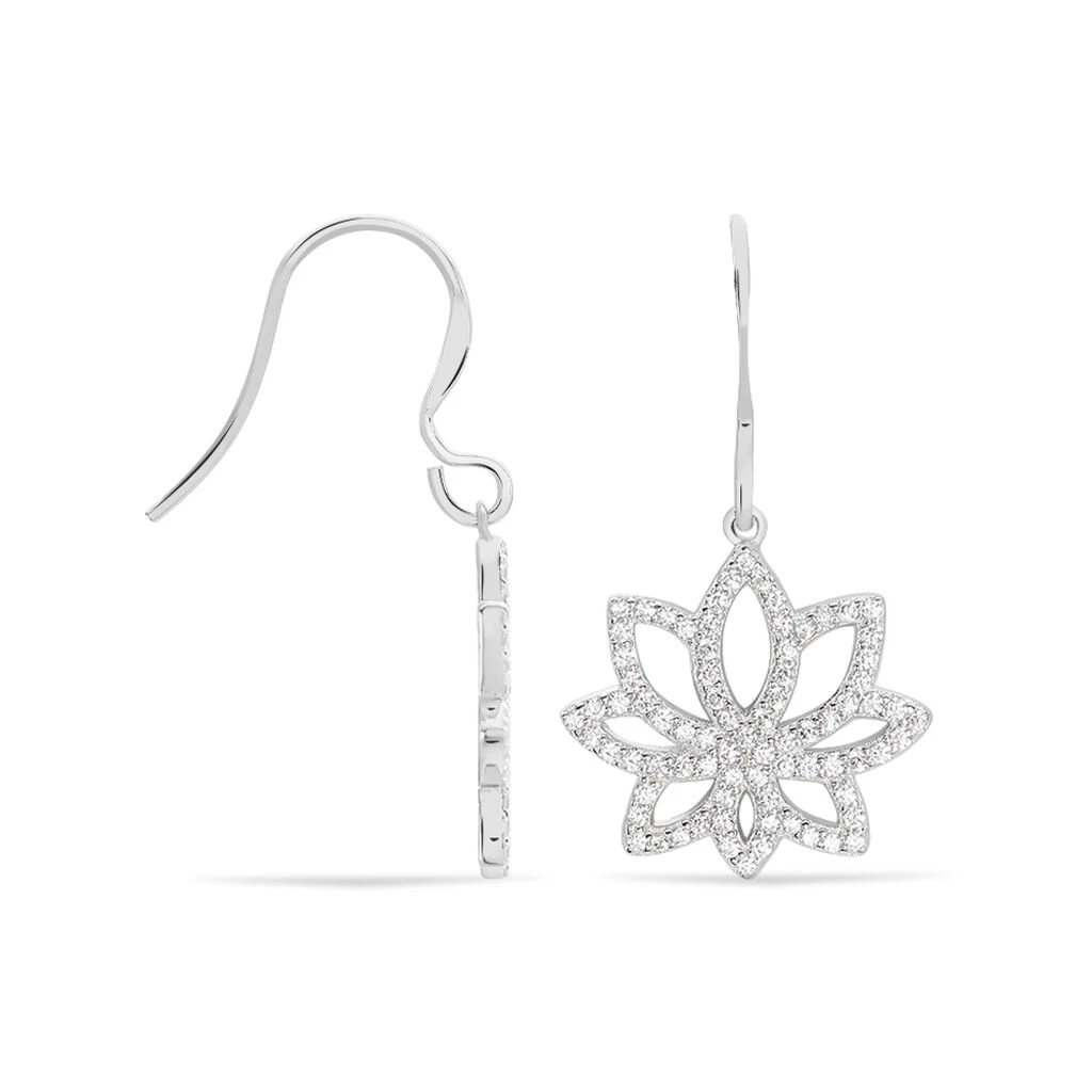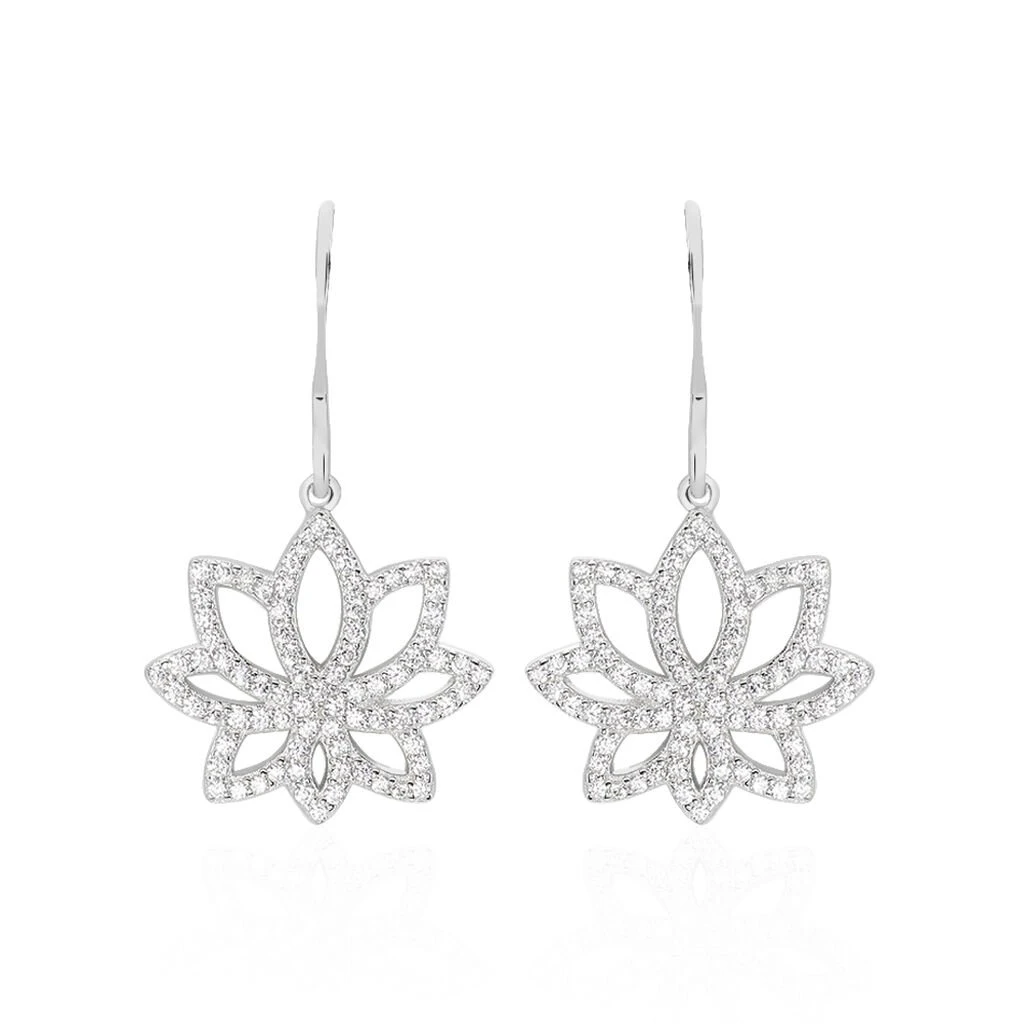 Boucles D’oreilles Argent 925/1000 Pendantes Motif Lotus Oxyde