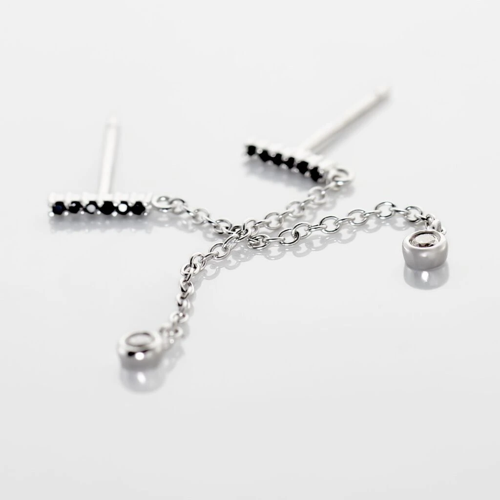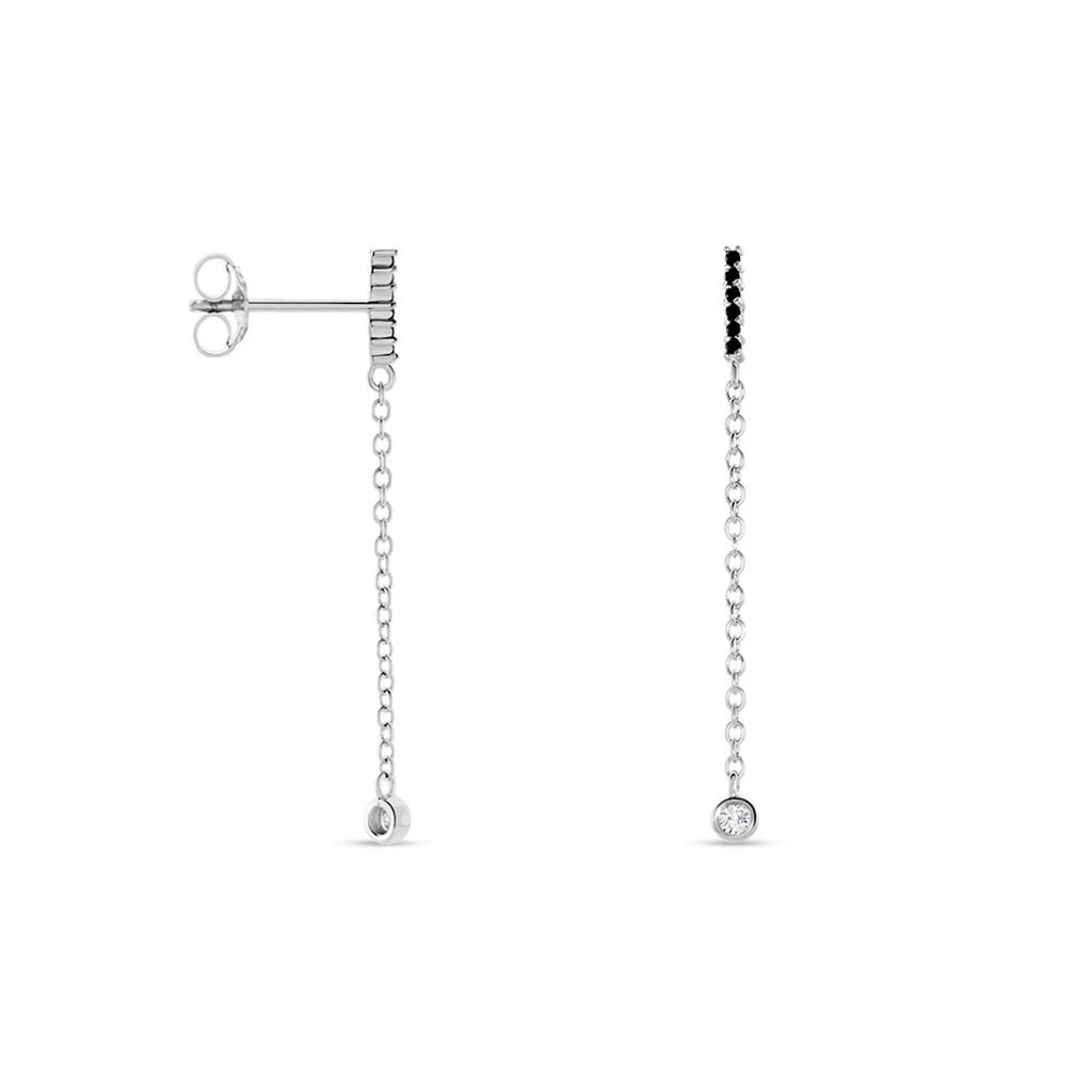 Boucles D’oreilles Pendantes Argent 925/1000 Barettes Micro Setting Oxydes De Zirconium Noir Et Blanc