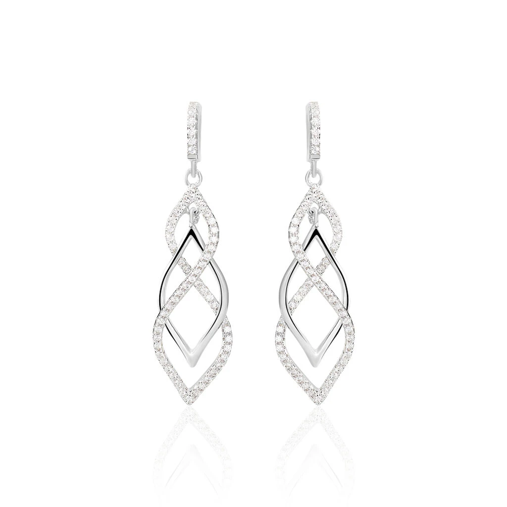 Boucles D’oreilles Pendantes Malika Argent Blanc Oxyde De Zirconium