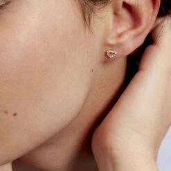Boucles D’oreilles Puces Coeur Ajoure Or Jaune Oxyde De Zirconium