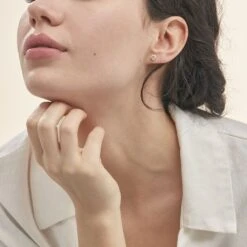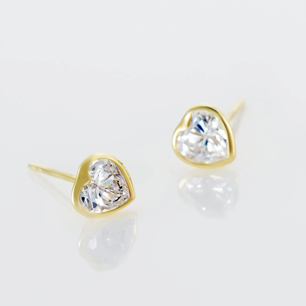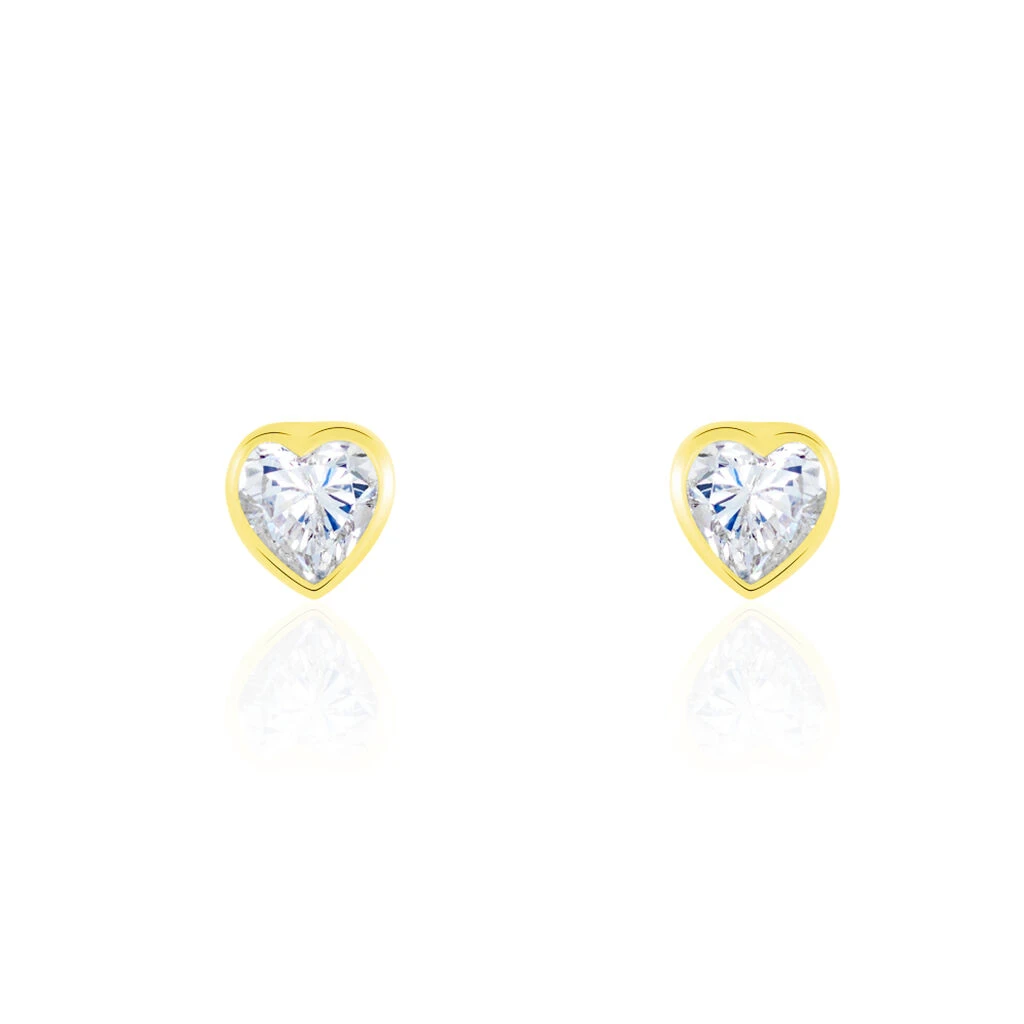 Boucles D’oreilles Puces Coeur Serti Clos Or Jaune Oxyde De Zirconium
