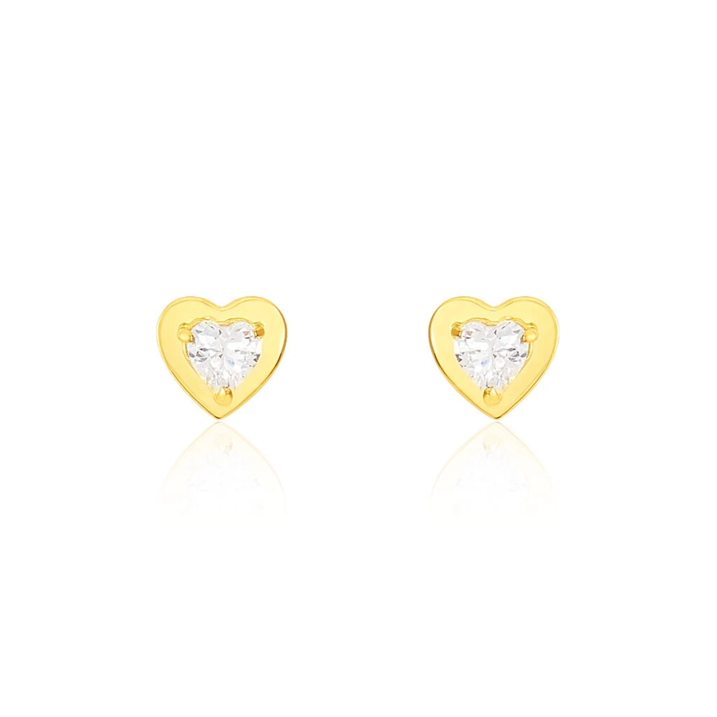 Boucles D’oreilles Puces Daria Coeur Plein Or Jaune Oxyde De Zirconium