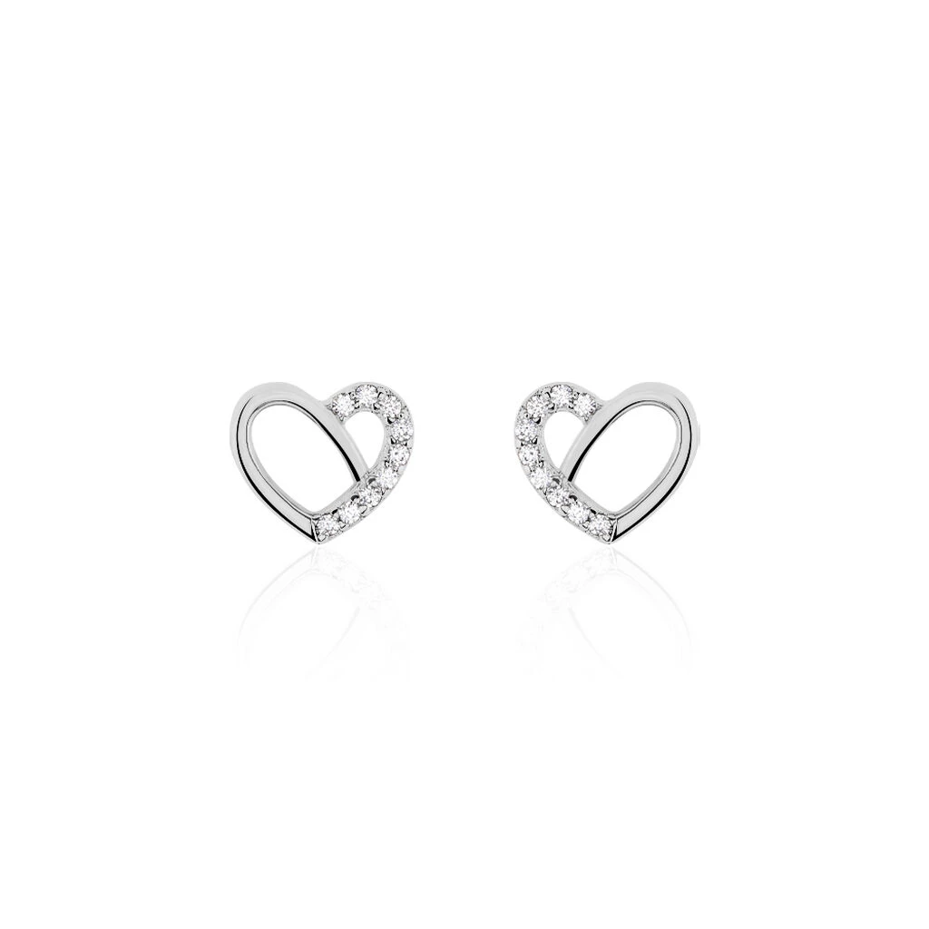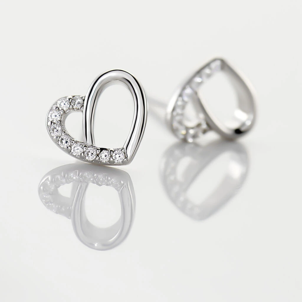 Boucles D’oreilles Puces Argent Blanc 925/1000 Dessins De CĹ“ur Micro Setting Oxydes De Zirconium