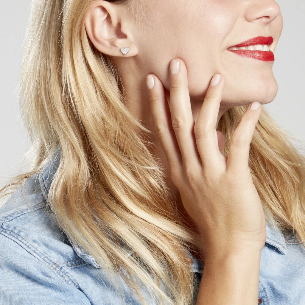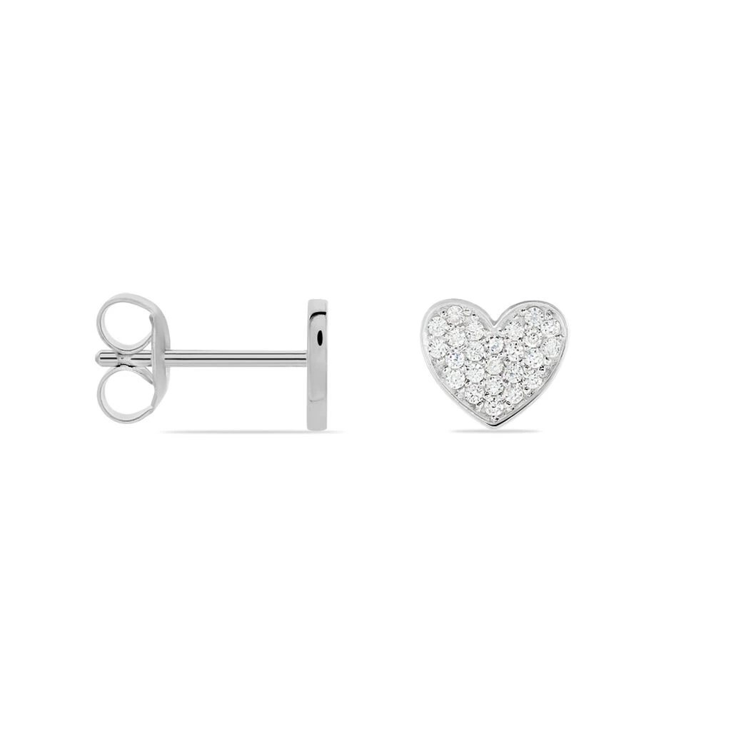 Boucles D’oreilles Puces Argent Blanc 925/1000 Motifs Coeurs Pavage Oxydes De Zirconium