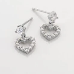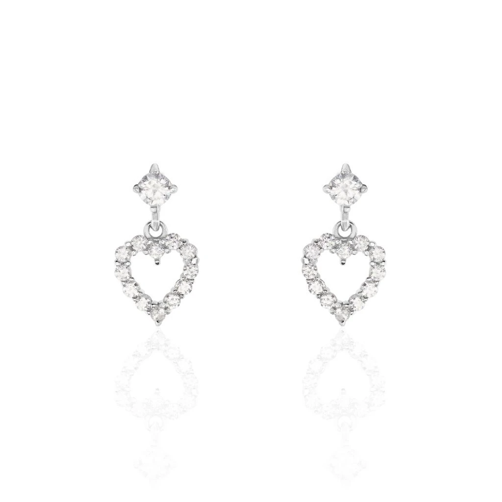 Boucles D’oreilles Puces Argent 925/1000 CĹ“ur AjourĂ© Oxyde De Zirconium