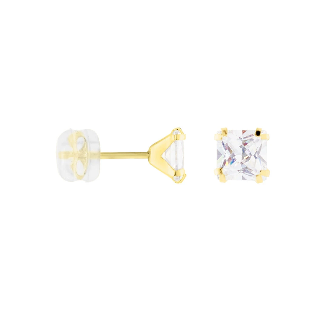 Boucles D’oreilles Puces Or Jaune 375/1000 Oxydes De Zirconium Carre 5mm