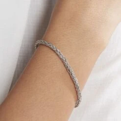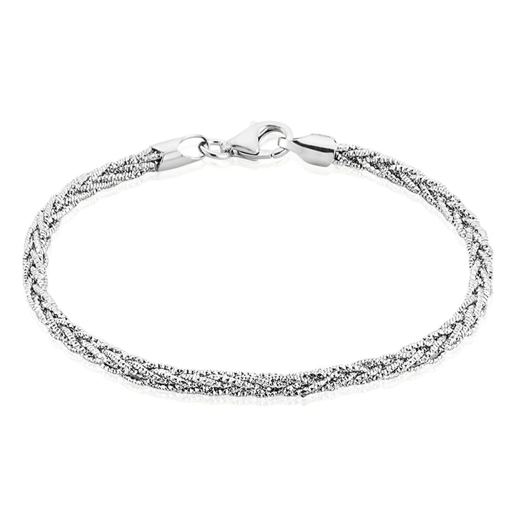 Bracelet Argent 925/1000 Maille Queue De Souris Bombée Diamantée Epaisseur 4mm 18cm