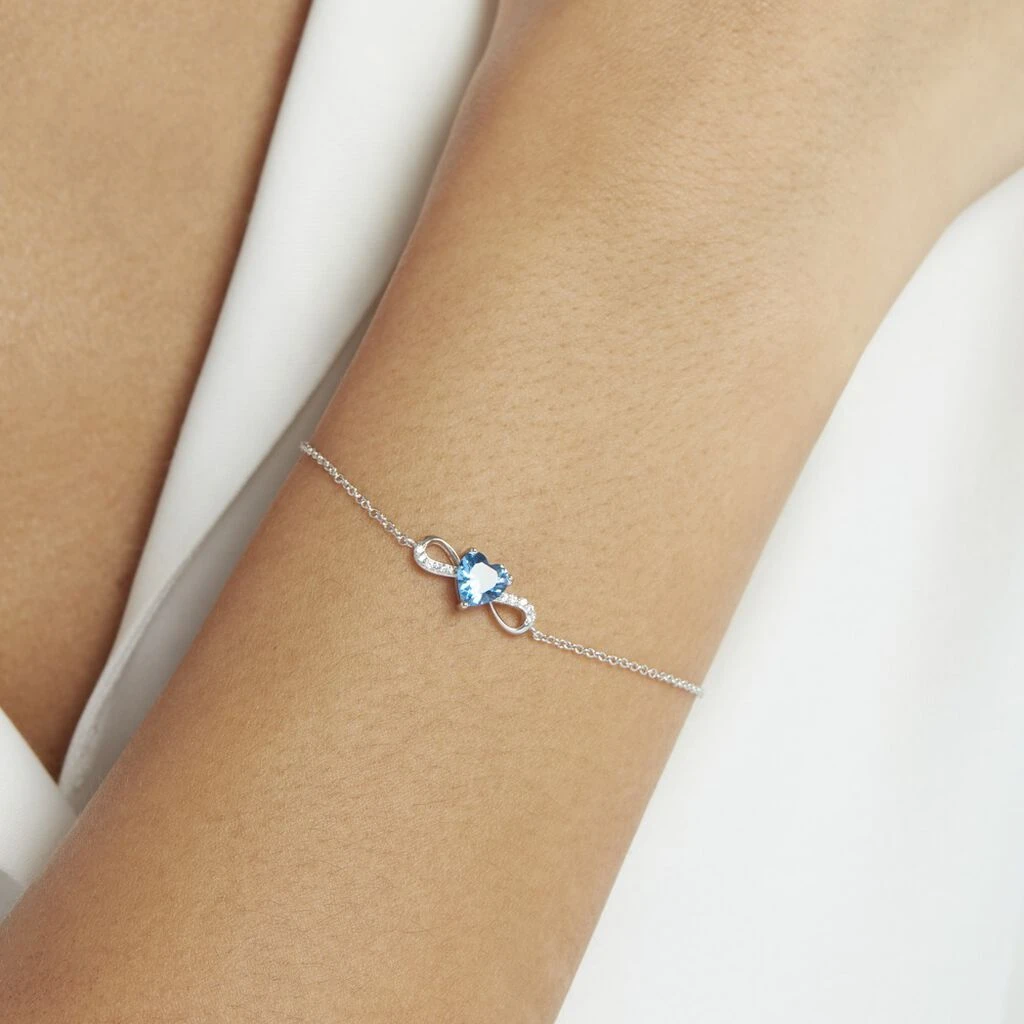 Bracelet Argent Blanc 925/1000 Cœur Serti Griffes Oxyde De Zirconium Bleu Accompagné Maille Forçat 19cm