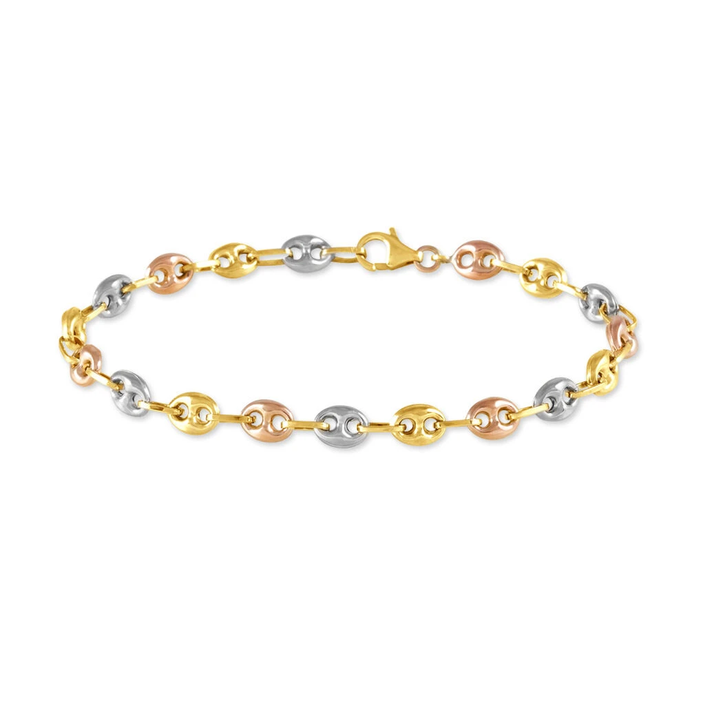 Bracelet Or Tricolore 375/1000 Maille Grain De Café 4.7mm 18cm
