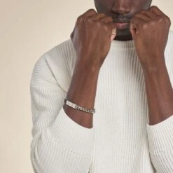 Bracelet Identite Acier Blanc Avec Barrette Or Jaune Et Diamant 21cm