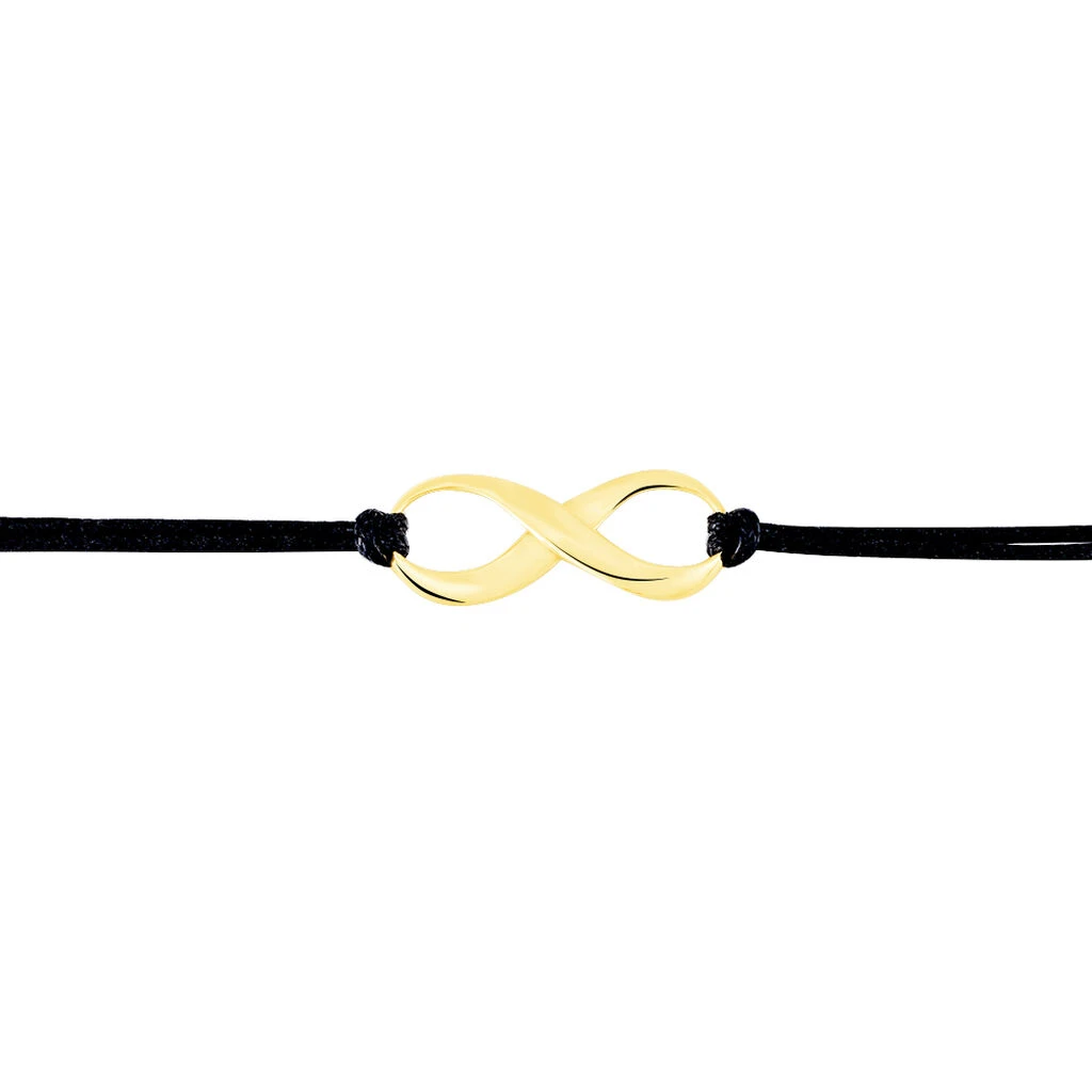 Bracelet Or Jaune 375/1000 Forme Huit Sur Cordon Coton Noir
