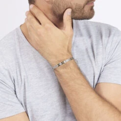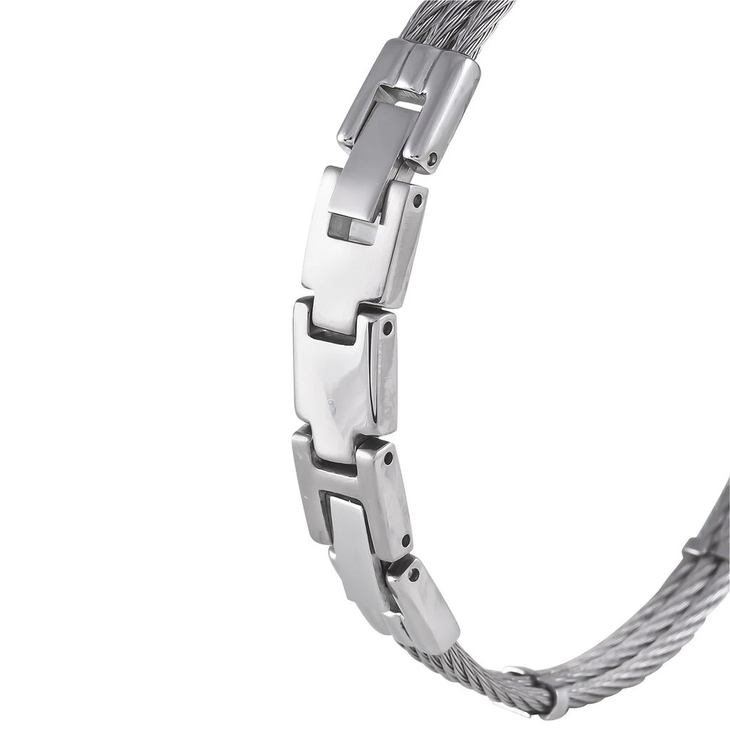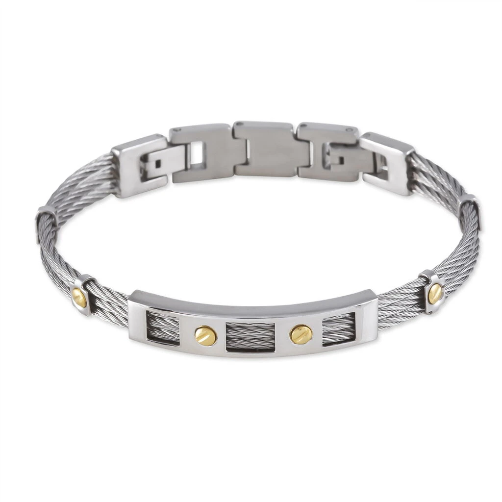 Bracelet Acier Blanc Cable Vis Plaque Or Jaune 20cm